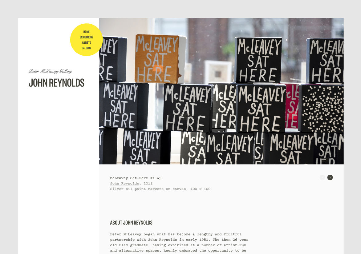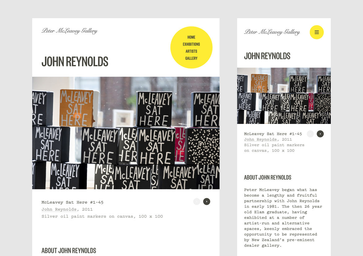 Digital Digital Campaigns Digital Products E-Commerce Websites (new 2024) Game Design Installation & Exhibition Large Scale Websites Small Scale Websites Student Digital User Experience (archived 2022) Animation Digital — formerly Interactive (2010–2019) Film Graphic Moving Image (archived 2025) Product Social Good Award Spatial Toitanga Value of Design Award User Experience Award (archived 2019) All categories Digital Campaigns Digital Products E-Commerce Websites (new 2024) Game Design Installation & Exhibition Large Scale Websites Small Scale Websites Student Digital User Experience (archived 2022) All years 2025 2024 2023 2022 2021 2020 2019 2018 2017 2016 2015 2014 2013 2012 2011 2010 Studio A-Z Brent Neave Peter McLeavey Gallery 2015 Small Scale Websites Credits Pou Auaha / Creative Director Brent Neave Ngā Kaimahi / Team Member Brent Neave Kaitautoko / Contributor Olivia McLeavey Client Peter McLeavey Gallery
