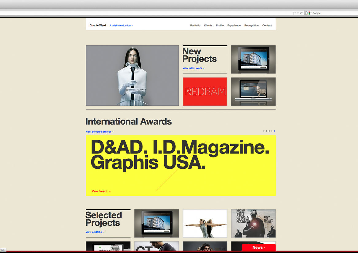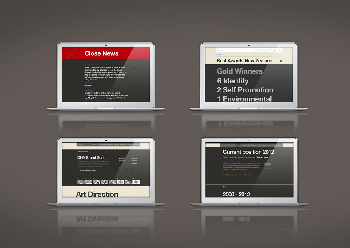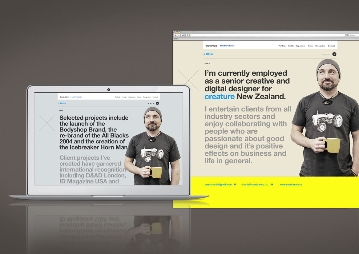 Digital Digital Campaigns Digital Products E-Commerce Websites (new 2024) Game Design Installation & Exhibition Large Scale Websites Small Scale Websites Student Digital User Experience (archived 2022) Animation Digital — formerly Interactive (2010–2019) Film Graphic Moving Image (archived 2025) Product Social Good Award Spatial Toitanga Value of Design Award User Experience Award (archived 2019) All categories Digital Campaigns Digital Products E-Commerce Websites (new 2024) Game Design Installation & Exhibition Large Scale Websites Small Scale Websites Student Digital User Experience (archived 2022) All years 2025 2024 2023 2022 2021 2020 2019 2018 2017 2016 2015 2014 2013 2012 2011 2010 Studio A-Z Charlie Ward 2 Charlie Ward Website Finalist 2012 Small Scale Websites Credits Ringatoi Matua / Design Director Charlie Ward Kaitautoko / Contributor John Milmine - Developer Client Charlie Ward