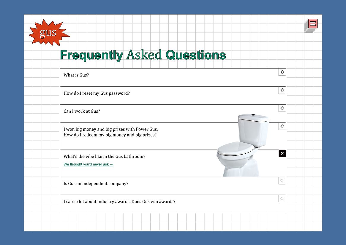 For Gus, the delightfully weird New York-based Creative Strategy™ agency, we built an unconventional site that utilises a “big green grid”: a hyper-flexible plane of cubes that shatter, pull away, or protrude to reveal all manners of curiosities. A project snippet. A case study. Even a game of Pong. Differentiating them from the sea of black-and-white minimalist agency sites, Gus is now equipped with a one-of-a-kind site that celebrates eccentricity, variety, and surprise. Gus believes in getting weird, and we hope you do too.