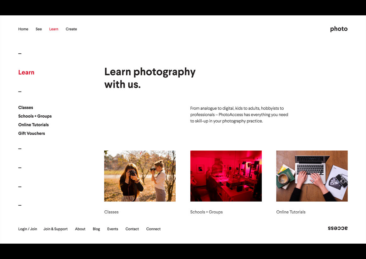 Digital Digital Campaigns Digital Products E-Commerce Websites (new 2024) Game Design Installation & Exhibition Large Scale Websites Small Scale Websites Student Digital User Experience (archived 2022) Animation Digital — formerly Interactive (2010–2019) Film Graphic Moving Image (archived 2025) Product Social Good Award Spatial Toitanga Value of Design Award User Experience Award (archived 2019) All categories Digital Campaigns Digital Products E-Commerce Websites (new 2024) Game Design Installation & Exhibition Large Scale Websites Small Scale Websites Student Digital User Experience (archived 2022) All years 2025 2024 2023 2022 2021 2020 2019 2018 2017 2016 2015 2014 2013 2012 2011 2010 Studio A-Z ED. 20 Photo Access Finalist 2018 Small Scale Websites Credits Ringatoi Matua / Design Director Elliot Schultz Ngā Kaimahi / Team Members Daniel Lever, Klara Ahlin, Cameron Tidy Client Photo Access