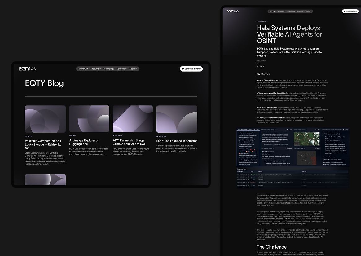 This isn't just a website – it's a bridge between AI's potential and society's need for accountability. At a time when trust in technology has never been more critical, EQTY Lab's digital presence shows how transparency and clarity can work together to build confidence in our AI-powered future.