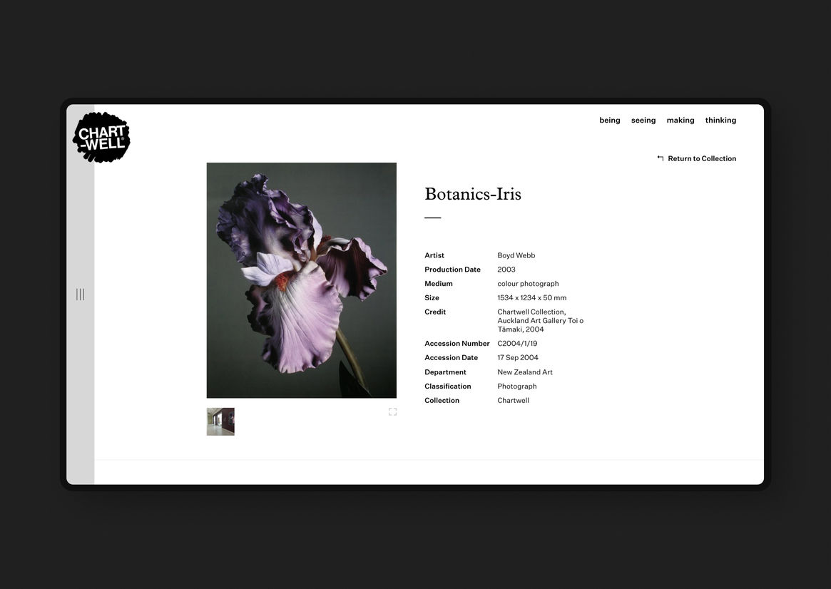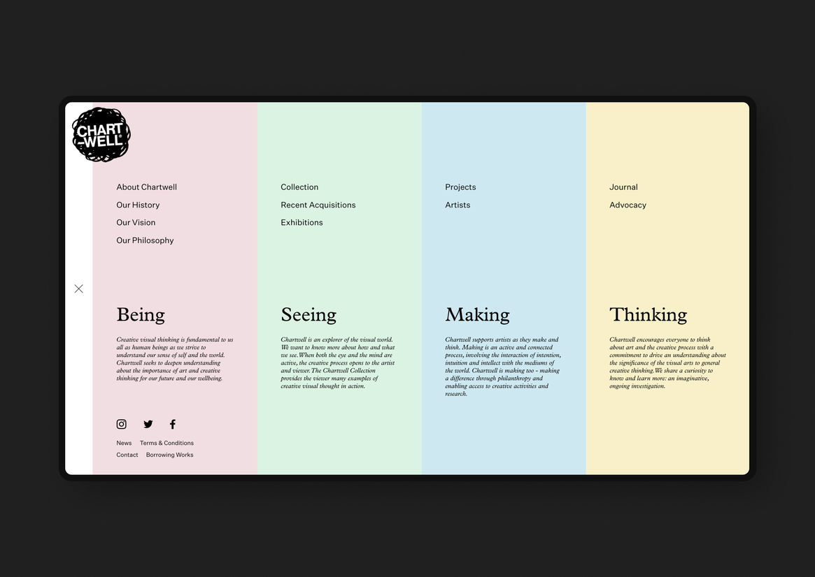 Digital Digital Campaigns Digital Products E-Commerce Websites (new 2024) Game Design Installation & Exhibition Large Scale Websites Small Scale Websites Student Digital User Experience (archived 2022) Animation Digital — formerly Interactive (2010–2019) Film Graphic Moving Image (archived 2025) Product Social Good Award Spatial Toitanga Value of Design Award User Experience Award (archived 2019) All categories Digital Campaigns Digital Products E-Commerce Websites (new 2024) Game Design Installation & Exhibition Large Scale Websites Small Scale Websites Student Digital User Experience (archived 2022) All years 2025 2024 2023 2022 2021 2020 2019 2018 2017 2016 2015 2014 2013 2012 2011 2010 Studio A-Z Gladeye 55 The Chartwell Project 2020 Small Scale Websites Credits Pou Auaha / Creative Director Gladeye Kaitautoko / Contributor Inhouse Design Client Chartwell Trust