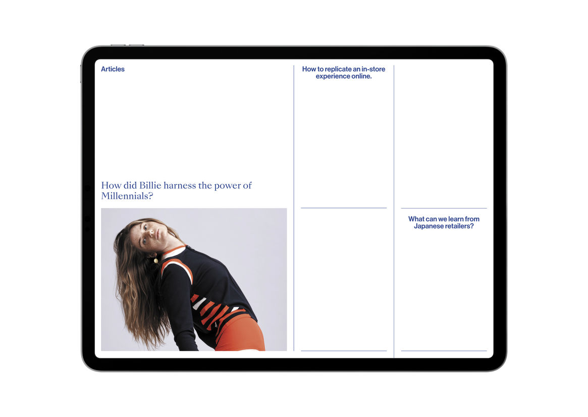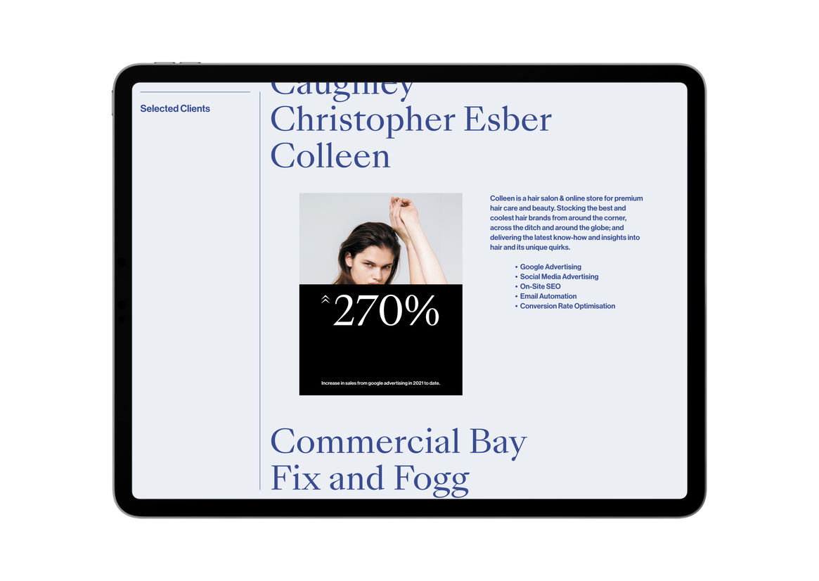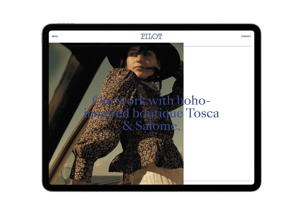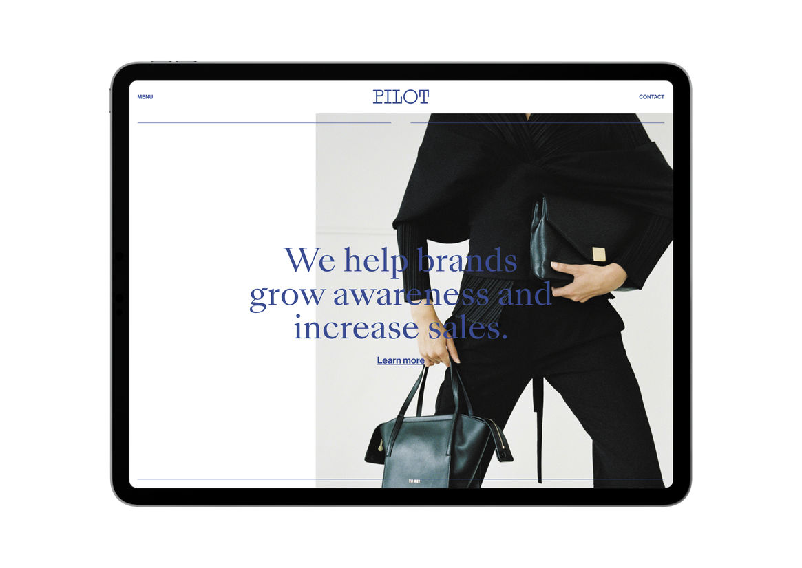 Animated numbers draw attention to the impressive results that Pilot can offer clients. Content sits within a light and open layout — always guiding users towards a call to action at the end of the page. A uniquely designed grid system facilitates discovery through organic and random moments of interaction. The design mirrors the elegant minimalism found in high-end fashion editorials, with an elegant serif taking centre stage. As Pilot do not offer creative services, it was important that messaging and user experience communicated this. This visual language balances typography, imagery and negative space, giving Pilot a recognisable voice.