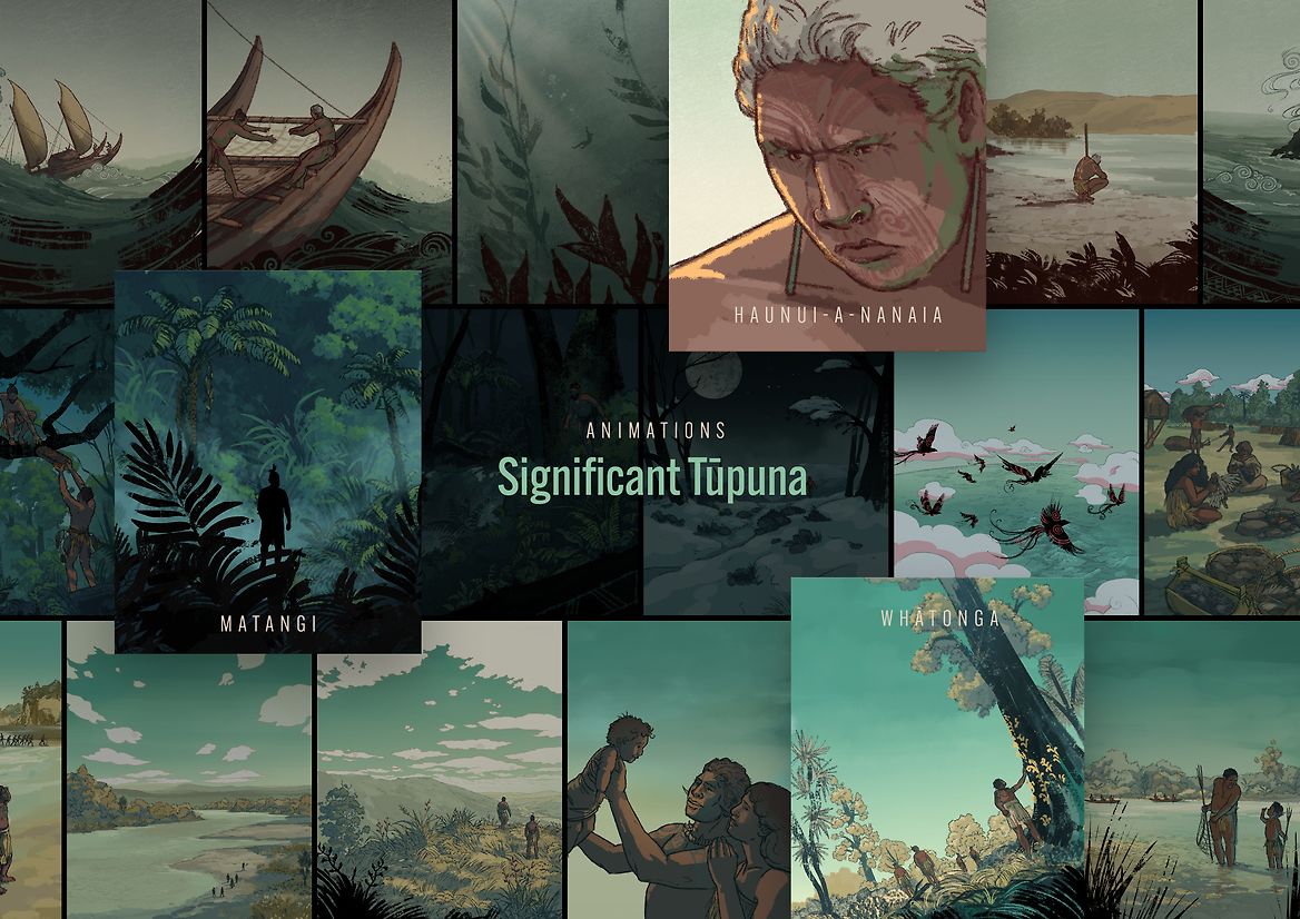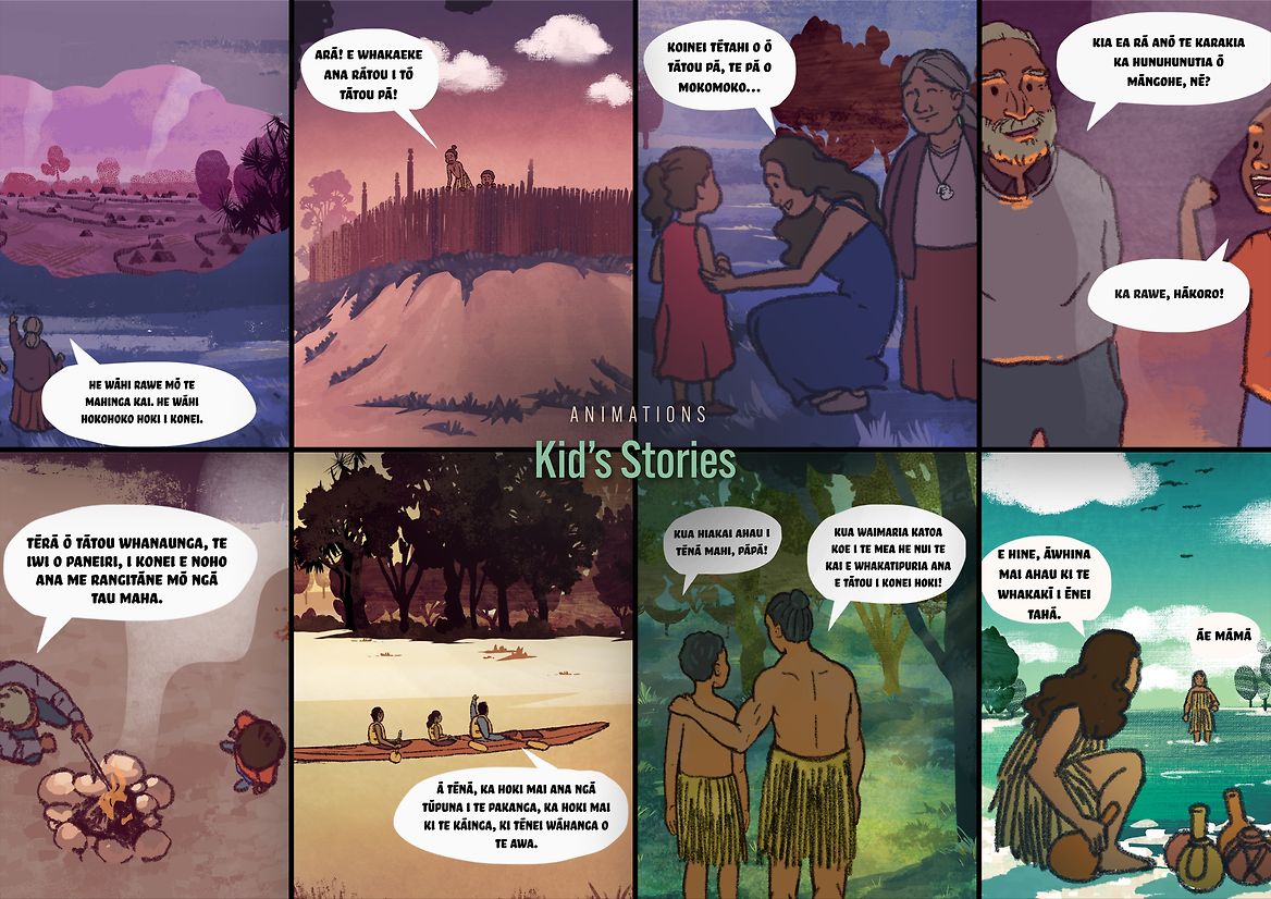 The stories of prominent tūpuna are illustrated in a collection of animated graphic novels, integrating pūrākau shared during oral histories into beautiful, hand-illustrated portrayals of each kōrero. The family-friendly graphic novels explore key themes at each site in a light and playful manner, each complemented by a specially composed and recorded waiata.