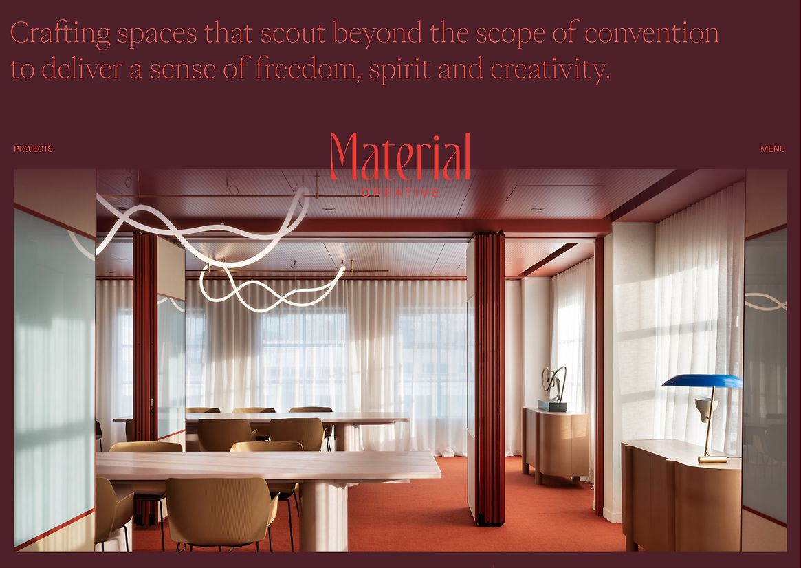 Material Creative approached us to create a website to showcase its award-winning portfolio of work. The objective was to celebrate its projects and create a pathway to connect with clients. Beyond function, there was also the importance of imparting a feeling. To capture what it’s like to experience a Material Creative space — even if you’ve never set foot in one.