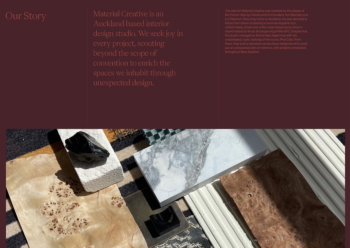 To futureproof, the door was left open for phase two of the website. Shopify is ready for Material Creative to introduce an e-commerce aspect to its business down the line.