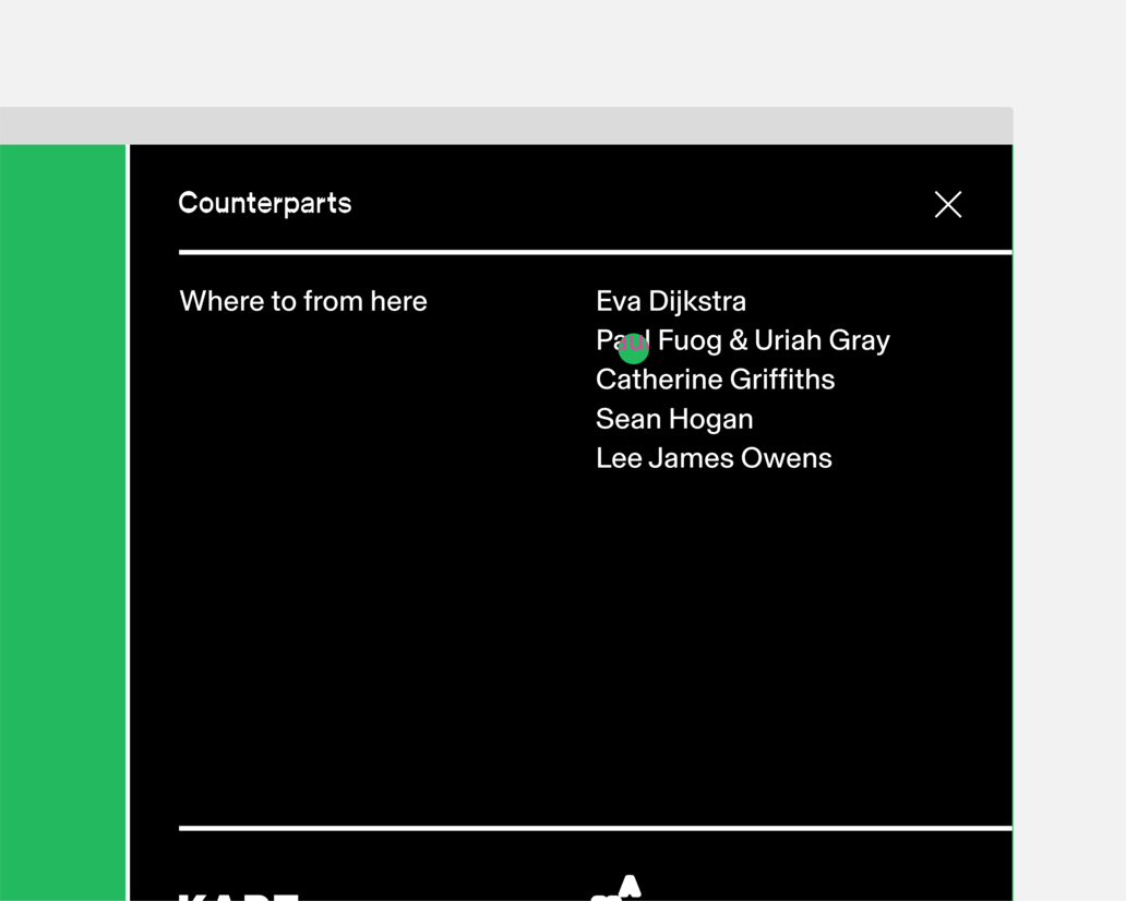 To launch the exhibition, we created a new visual identity that visually references the artists’ overlapping practices using typography, layout and interaction.