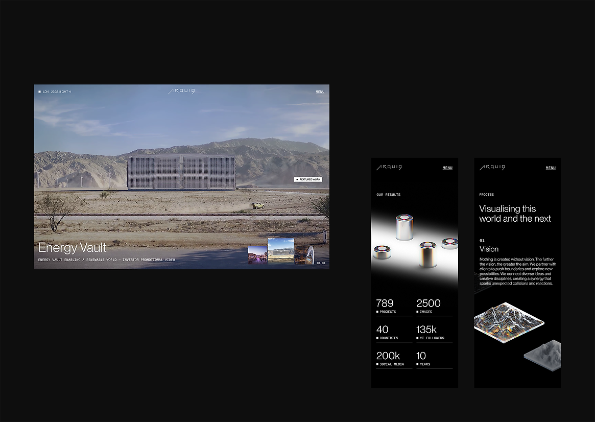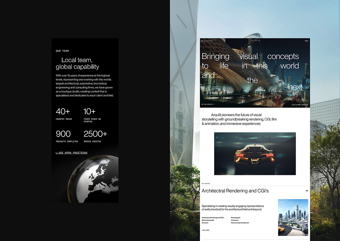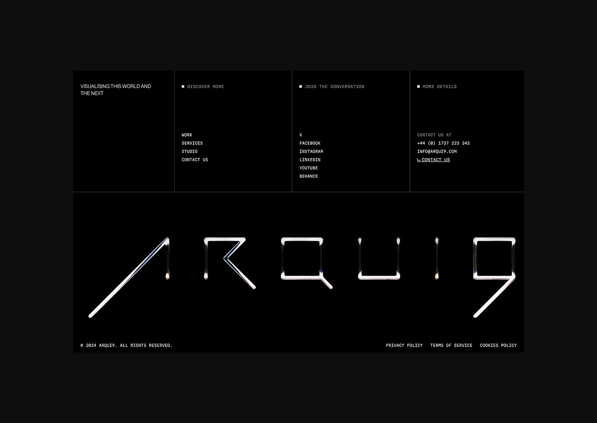 Arqui9 is a renowned London-based 3D creative agency known for cinematic films, architectural rendering, and immersive visual storytelling. As their reputation and client base expanded globally, their existing digital presence no longer reflected the bold, high-fidelity nature of their work. Arqui9 approached N4 with a brief to completely reimagine their website: a space that could mirror their visual ambition, connect with design-conscious clients, and function seamlessly across devices and regions.