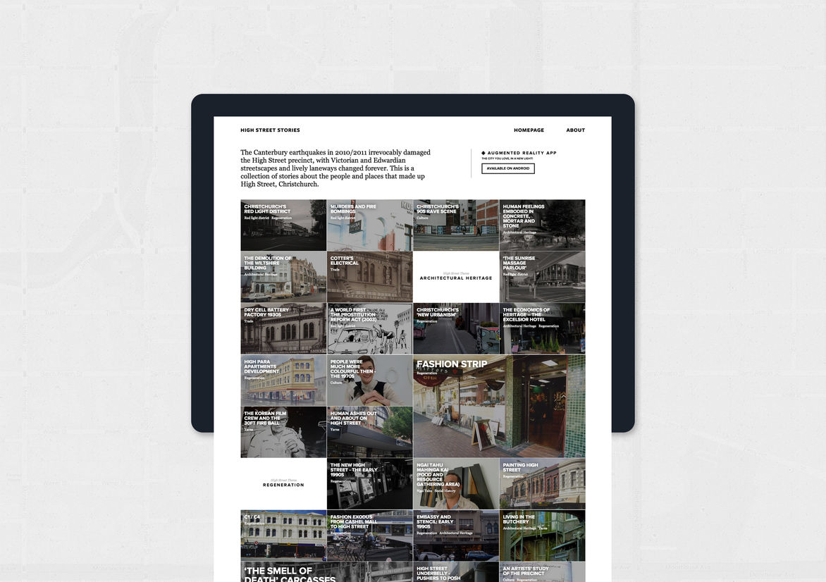 Digital Digital Campaigns Digital Products E-Commerce Websites (new 2024) Game Design Installation & Exhibition Large Scale Websites Small Scale Websites Student Digital User Experience (archived 2022) Animation Digital — formerly Interactive (2010–2019) Film Graphic Moving Image (archived 2025) Product Social Good Award Spatial Toitanga Value of Design Award User Experience Award (archived 2019) All categories Digital Campaigns Digital Products E-Commerce Websites (new 2024) Game Design Installation & Exhibition Large Scale Websites Small Scale Websites Student Digital User Experience (archived 2022) All years 2025 2024 2023 2022 2021 2020 2019 2018 2017 2016 2015 2014 2013 2012 2011 2010 Studio A-Z NV Interactive 44 High Street Stories Website Finalist 2014 Small Scale Websites Credits Pou Auaha / Creative Director Bobby Dennis Kaitautoko / Contributors Tim McConnell, Jon Whitehead Client Heritage New Zealand - Pouhere Taonga