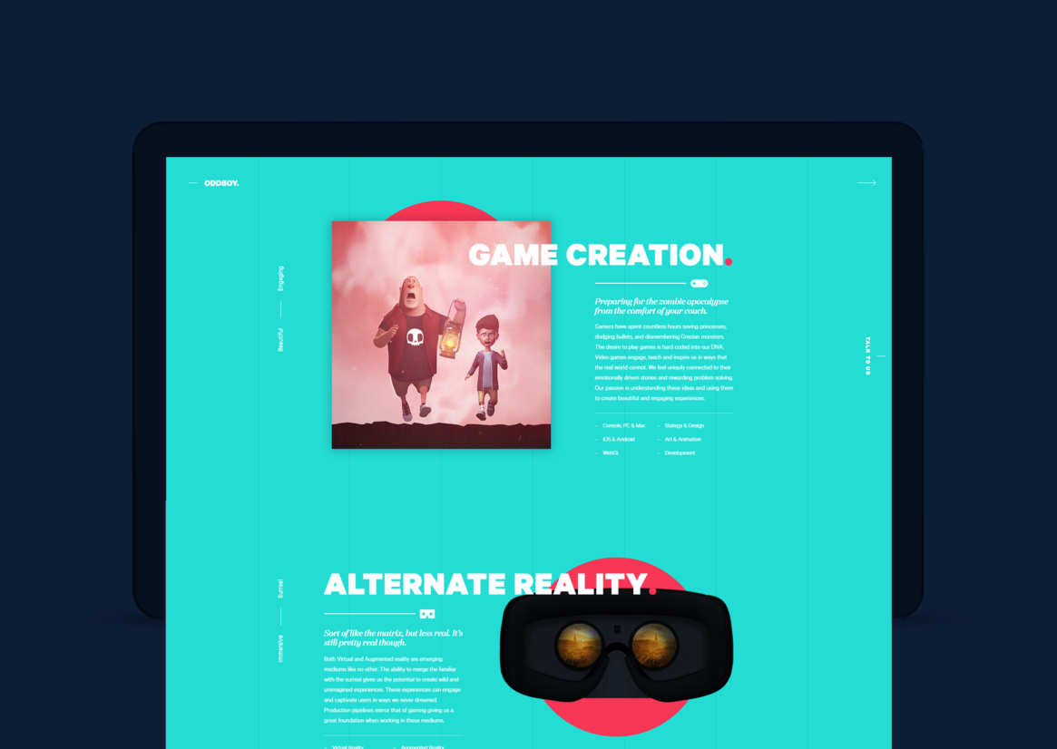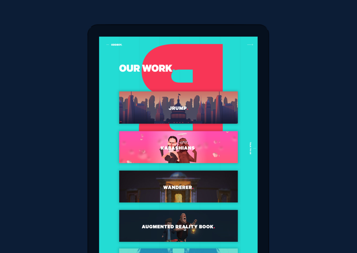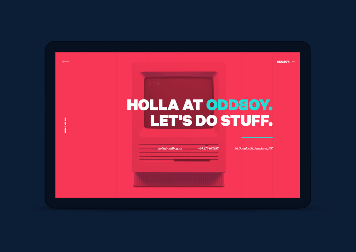 Digital Digital Campaigns Digital Products E-Commerce Websites (new 2024) Game Design Installation & Exhibition Large Scale Websites Small Scale Websites Student Digital User Experience (archived 2022) Animation Digital — formerly Interactive (2010–2019) Film Graphic Moving Image (archived 2025) Product Social Good Award Spatial Toitanga Value of Design Award User Experience Award (archived 2019) All categories Digital Campaigns Digital Products E-Commerce Websites (new 2024) Game Design Installation & Exhibition Large Scale Websites Small Scale Websites Student Digital User Experience (archived 2022) All years 2025 2024 2023 2022 2021 2020 2019 2018 2017 2016 2015 2014 2013 2012 2011 2010 Studio A-Z Oddboy 2 Oddboy Finalist 2017 Small Scale Websites Credits Pou Auaha / Creative Directors Benjamin Markby, Tom Bellamy Ngā Kaimahi / Team Member Celine Rufener