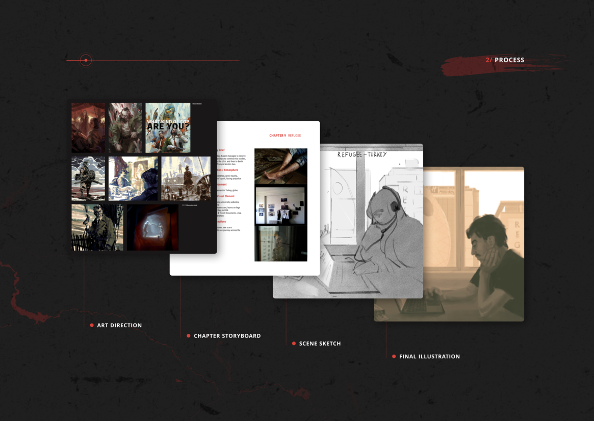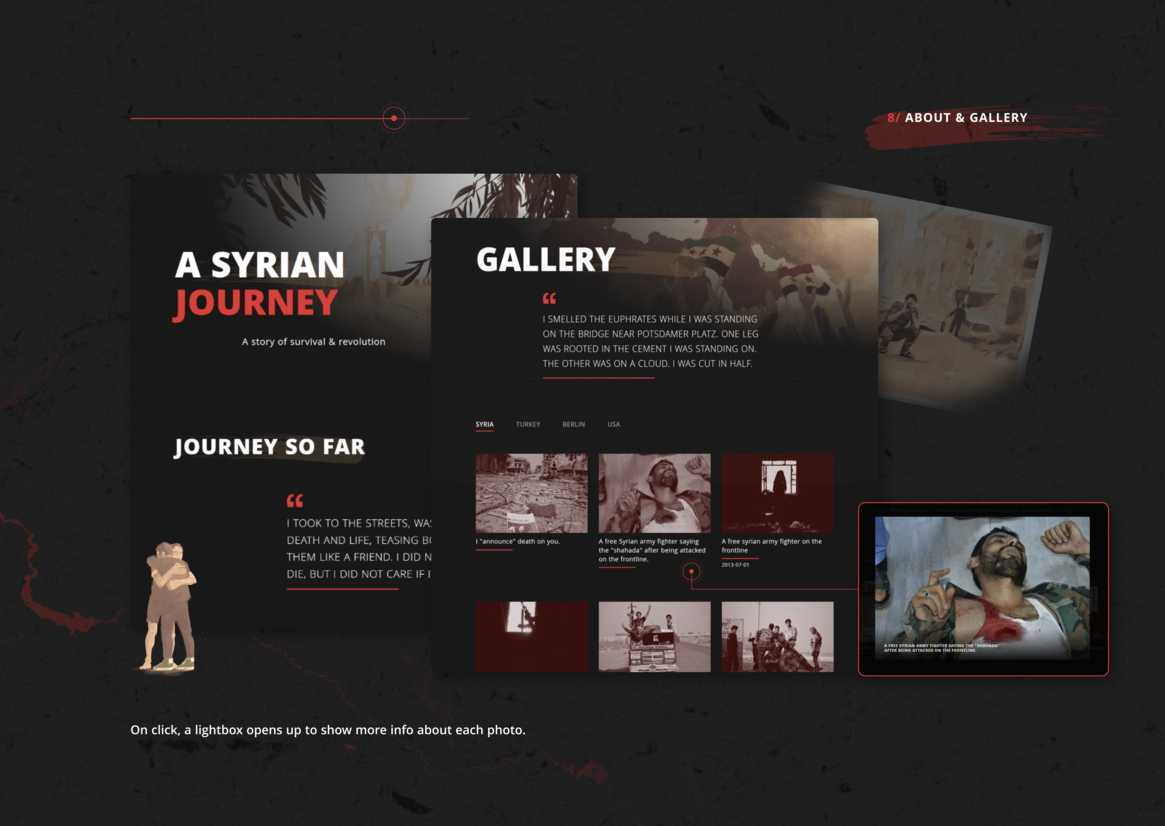 The goal was to condense Karam’s story into a 10 minute interactive experience using visual storytelling that evokes feelings of passion, hope and empathy. We aimed to shed light on not only his personal story, but the plight of Syrians who are currently detained as a result of activism.