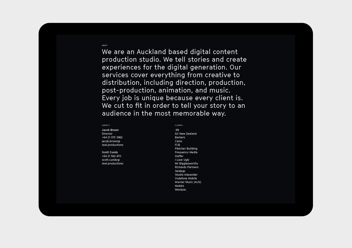 Digital Digital Campaigns Digital Products E-Commerce Websites (new 2024) Game Design Installation & Exhibition Large Scale Websites Small Scale Websites Student Digital User Experience (archived 2022) Animation Digital — formerly Interactive (2010–2019) Film Graphic Moving Image (archived 2025) Product Social Good Award Spatial Toitanga Value of Design Award User Experience Award (archived 2019) All categories Digital Campaigns Digital Products E-Commerce Websites (new 2024) Game Design Installation & Exhibition Large Scale Websites Small Scale Websites Student Digital User Experience (archived 2022) All years 2025 2024 2023 2022 2021 2020 2019 2018 2017 2016 2015 2014 2013 2012 2011 2010 Studio A-Z Richards Partners 34 Reel. Website 2015 Small Scale Websites Credits Pou Auaha / Creative Director Clem Devine Ngā Kaimahi / Team Members Bryn Fenemor, Olivia Wilson Kaitautoko / Contributor Dexter Edwards Client Reel.
