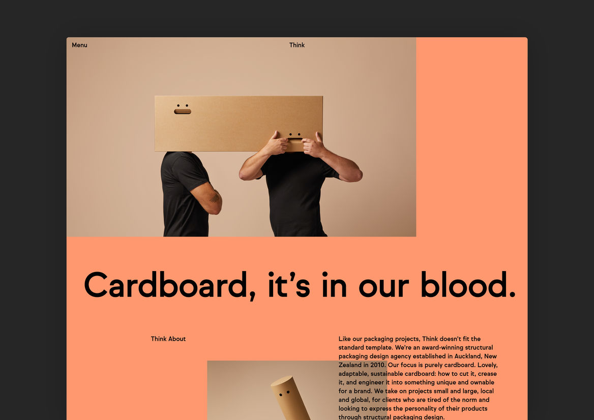 Digital Digital Campaigns Digital Products E-Commerce Websites (new 2024) Game Design Installation & Exhibition Large Scale Websites Small Scale Websites Student Digital User Experience (archived 2022) Animation Digital — formerly Interactive (2010–2019) Film Graphic Moving Image (archived 2025) Product Social Good Award Spatial Toitanga Value of Design Award User Experience Award (archived 2019) All categories Digital Campaigns Digital Products E-Commerce Websites (new 2024) Game Design Installation & Exhibition Large Scale Websites Small Scale Websites Student Digital User Experience (archived 2022) All years 2025 2024 2023 2022 2021 2020 2019 2018 2017 2016 2015 2014 2013 2012 2011 2010 Studio A-Z Seachange 83 Think Packaging 2021 Small Scale Websites Credits Pou Auaha / Creative Directors Tim Donaldson, Amanda Gaskin Ngā Kaimahi / Team Members Henry Tuck, George Boyd Client Think Packaging