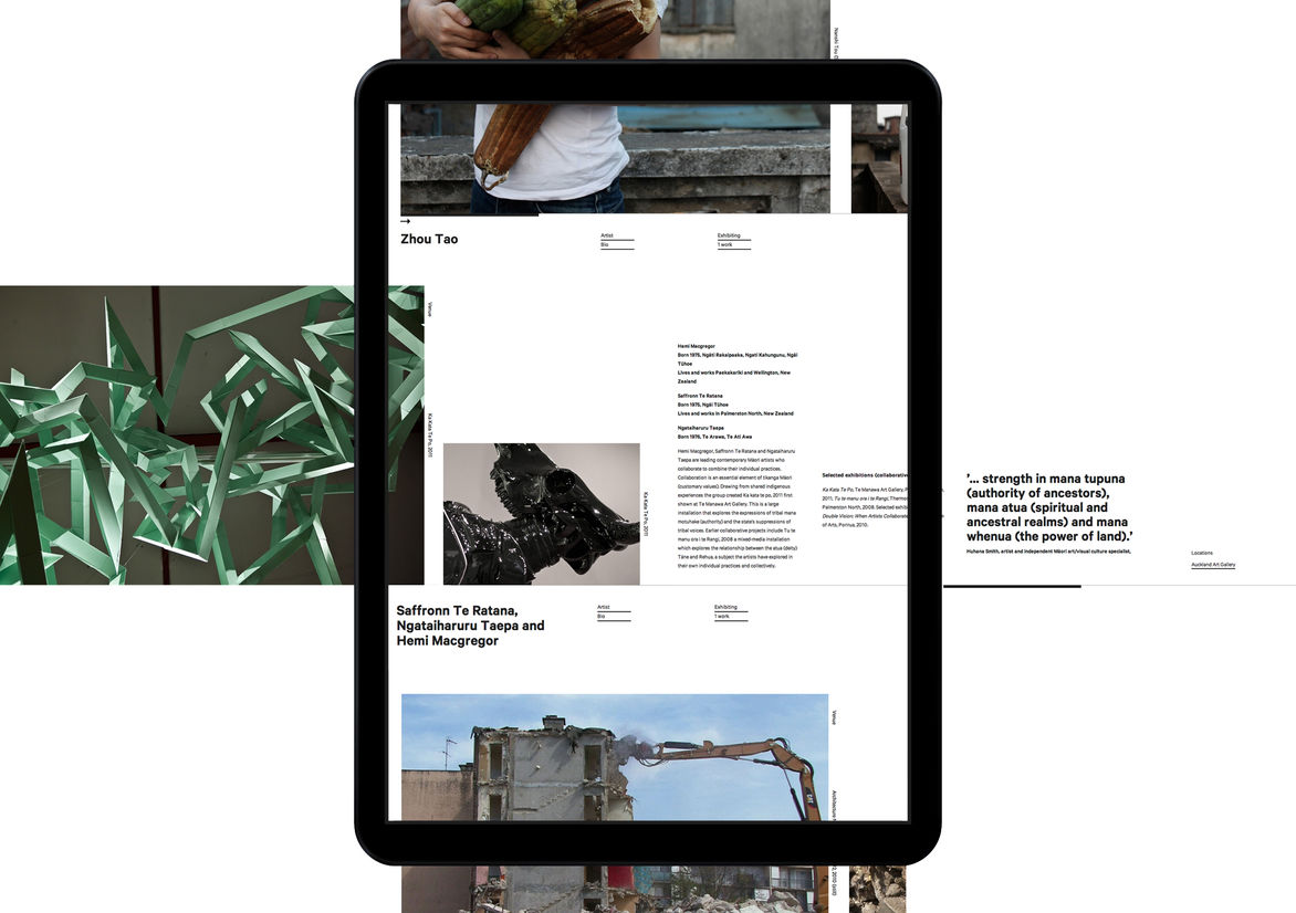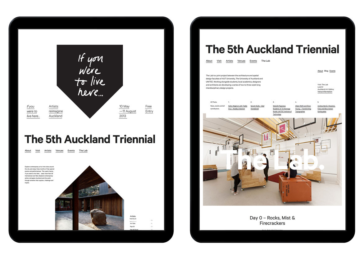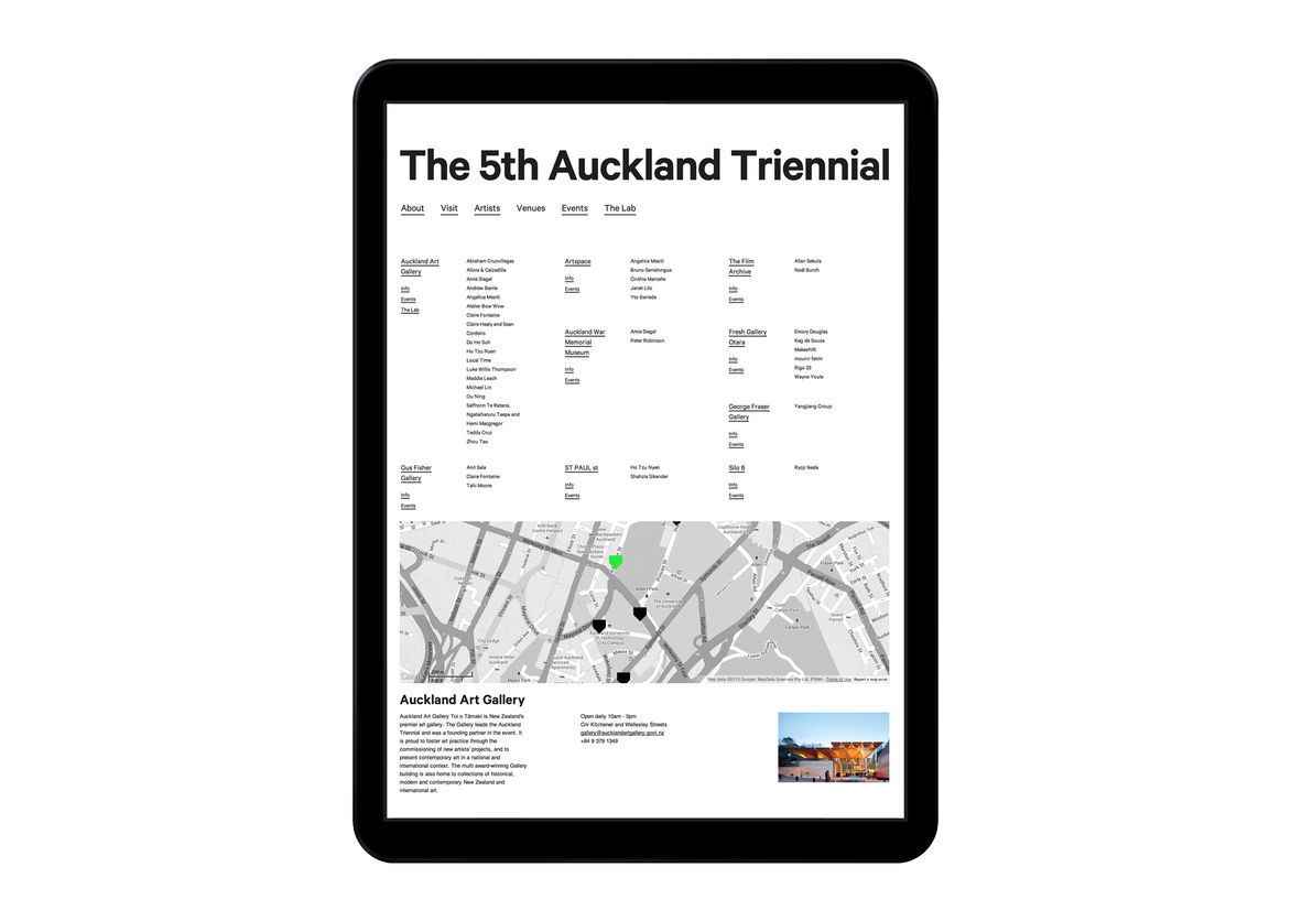 Digital Digital Campaigns Digital Products E-Commerce Websites (new 2024) Game Design Installation & Exhibition Large Scale Websites Small Scale Websites Student Digital User Experience (archived 2022) Animation Digital — formerly Interactive (2010–2019) Film Graphic Moving Image (archived 2025) Product Social Good Award Spatial Toitanga Value of Design Award User Experience Award (archived 2019) All categories Digital Campaigns Digital Products E-Commerce Websites (new 2024) Game Design Installation & Exhibition Large Scale Websites Small Scale Websites Student Digital User Experience (archived 2022) All years 2025 2024 2023 2022 2021 2020 2019 2018 2017 2016 2015 2014 2013 2012 2011 2010 Studio A-Z Sons & Co. 137 5th Auckland Triennial 2013 Small Scale Websites Credits Ringatoi Matua / Design Director Timothy Kelleher Ngā Kaimahi / Team Members Matthew Arnold, Greg Brown Kaitautoko / Contributor Inhouse Client Auckland Art Gallery