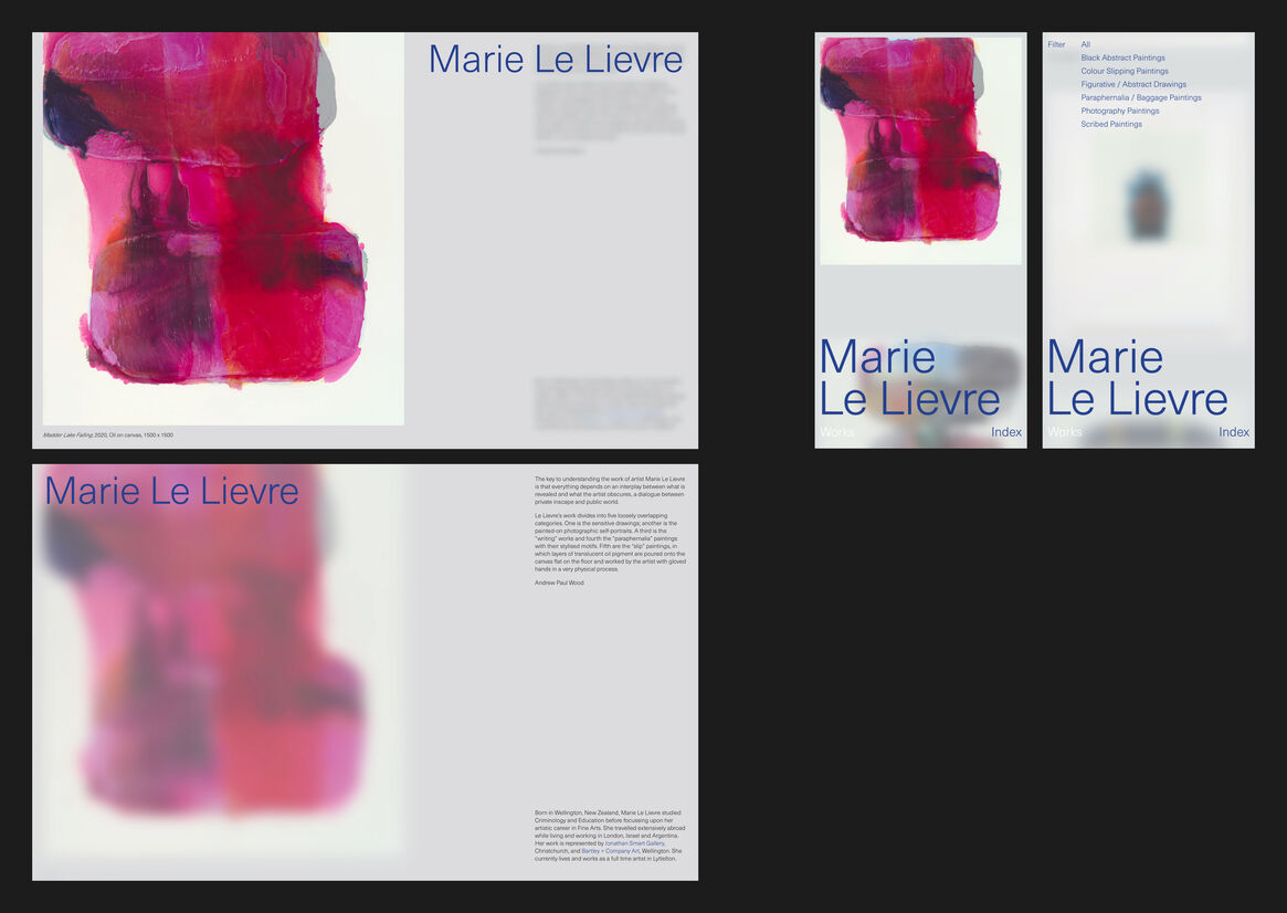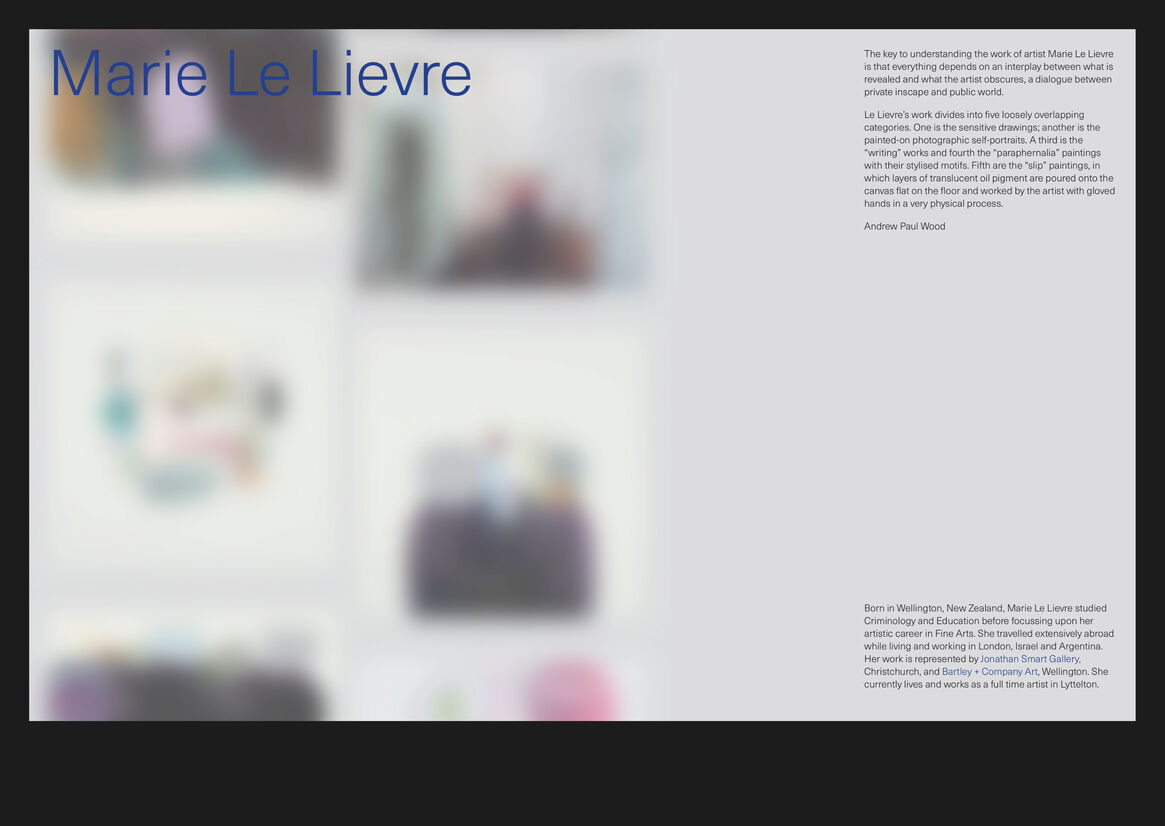 Digital Digital Campaigns Digital Products E-Commerce Websites (new 2024) Game Design Installation & Exhibition Large Scale Websites Small Scale Websites Student Digital User Experience (archived 2022) Animation Digital — formerly Interactive (2010–2019) Film Graphic Moving Image (archived 2025) Product Social Good Award Spatial Toitanga Value of Design Award User Experience Award (archived 2019) All categories Digital Campaigns Digital Products E-Commerce Websites (new 2024) Game Design Installation & Exhibition Large Scale Websites Small Scale Websites Student Digital User Experience (archived 2022) All years 2025 2024 2023 2022 2021 2020 2019 2018 2017 2016 2015 2014 2013 2012 2011 2010 Studio A-Z Sons & Co. 137 Garbett Marie Le Lievre 2021 Small Scale Websites Credits Pou Auaha / Creative Director Timothy Kelleher Ngā Kaimahi / Team Members Matthew Arnold, Paul Garbett, Piet van Leeuwen Client Marie Le Lievre