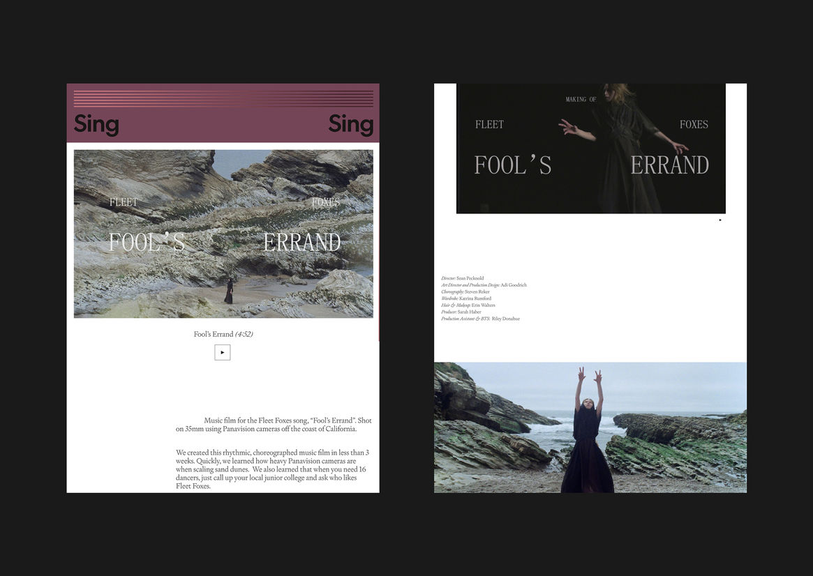 Digital Digital Campaigns Digital Products E-Commerce Websites (new 2024) Game Design Installation & Exhibition Large Scale Websites Small Scale Websites Student Digital User Experience (archived 2022) Animation Digital — formerly Interactive (2010–2019) Film Graphic Moving Image (archived 2025) Product Social Good Award Spatial Toitanga Value of Design Award User Experience Award (archived 2019) All categories Digital Campaigns Digital Products E-Commerce Websites (new 2024) Game Design Installation & Exhibition Large Scale Websites Small Scale Websites Student Digital User Experience (archived 2022) All years 2025 2024 2023 2022 2021 2020 2019 2018 2017 2016 2015 2014 2013 2012 2011 2010 Studio A-Z Sons & Co. 137 Sing Sing 2020 Small Scale Websites Credits Pou Auaha / Creative Director Timothy Kelleher Ngā Kaimahi / Team Members Matthew Arnold, Paul Bright, Adi Goodrich, Sean Pecknold Client Sing Sing