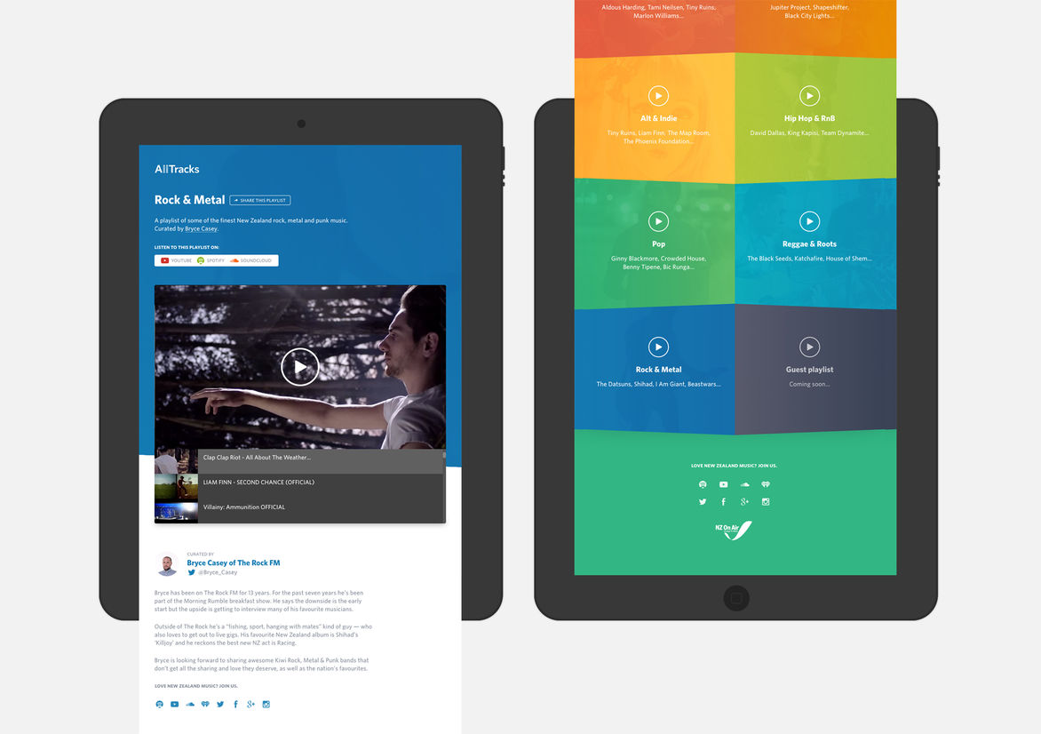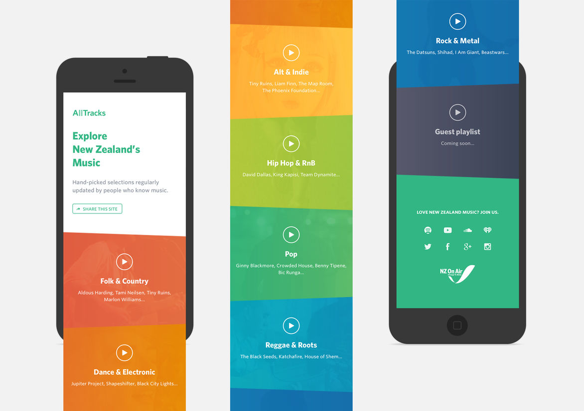 Digital Digital Campaigns Digital Products E-Commerce Websites (new 2024) Game Design Installation & Exhibition Large Scale Websites Small Scale Websites Student Digital User Experience (archived 2022) Animation Digital — formerly Interactive (2010–2019) Film Graphic Moving Image (archived 2025) Product Social Good Award Spatial Toitanga Value of Design Award User Experience Award (archived 2019) All categories Digital Campaigns Digital Products E-Commerce Websites (new 2024) Game Design Installation & Exhibition Large Scale Websites Small Scale Websites Student Digital User Experience (archived 2022) All years 2025 2024 2023 2022 2021 2020 2019 2018 2017 2016 2015 2014 2013 2012 2011 2010 Studio A-Z Springload 37 AllTracks Finalist 2015 Small Scale Websites Credits Pou Auaha / Creative Director Gareth Price Ringatoi Matua / Design Director Brent Neave Ngā Kaimahi / Team Members Thomas Winter, Richard Allardice Client NZ On Air