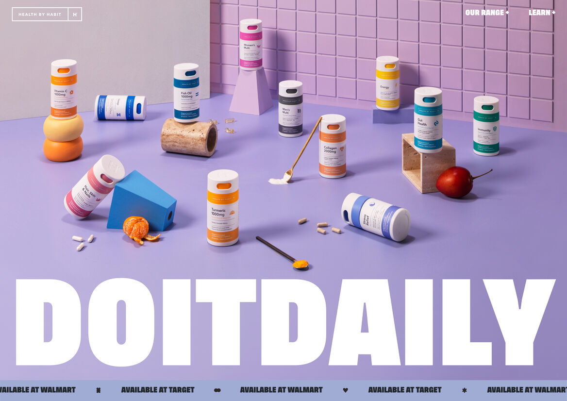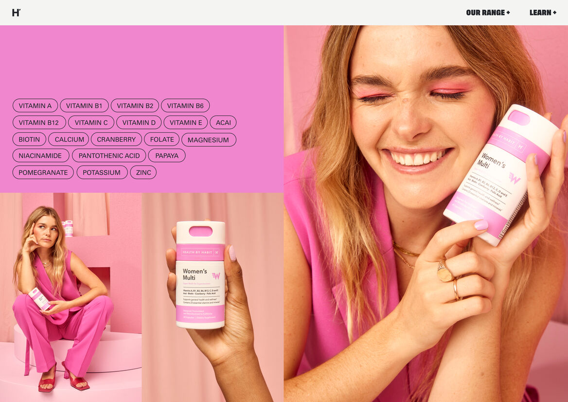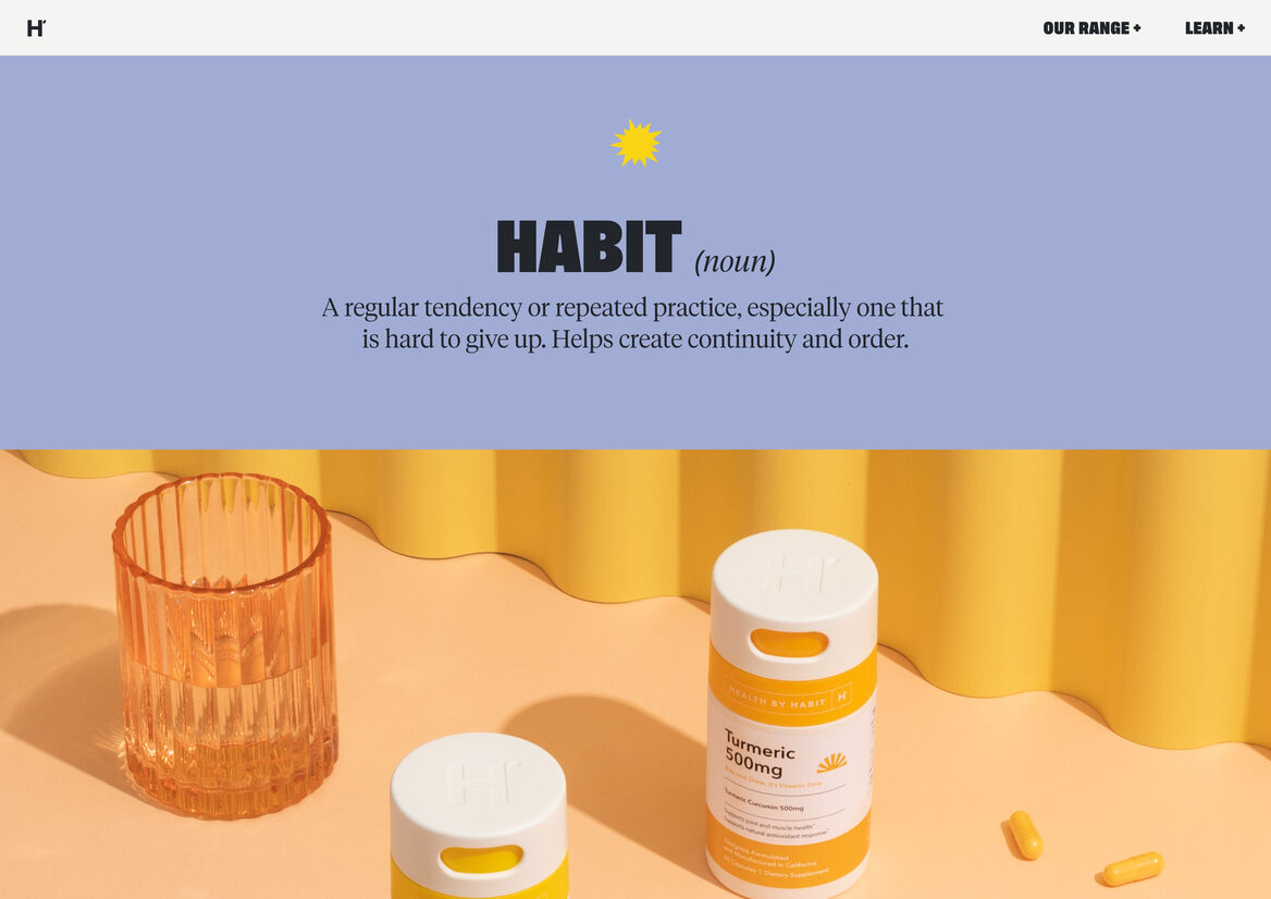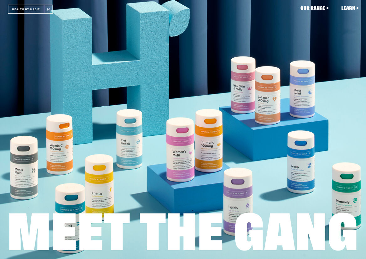 Enter Health by Habit, a supplement company challenging the status quo of what a wellness brand can be and making it relevant to today’s consumers. When designing the US website, the concept of harnessing control was visually depicted by a simplistic grid style design, but organised in an unexpected way, creating an easy-to-navigate platform for millennials and Gen Z to a enjoy a more unique and holistic view into the world of supplements.