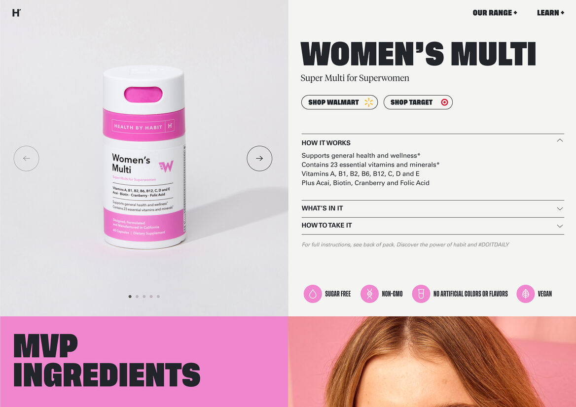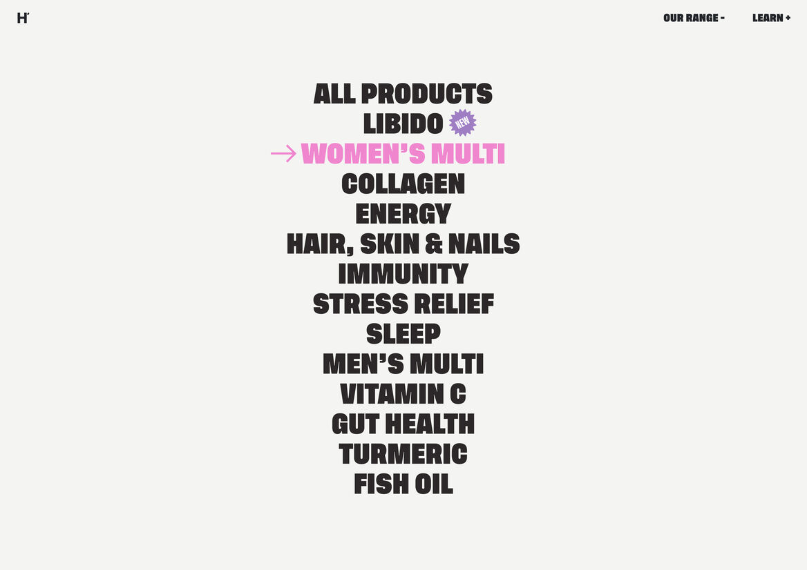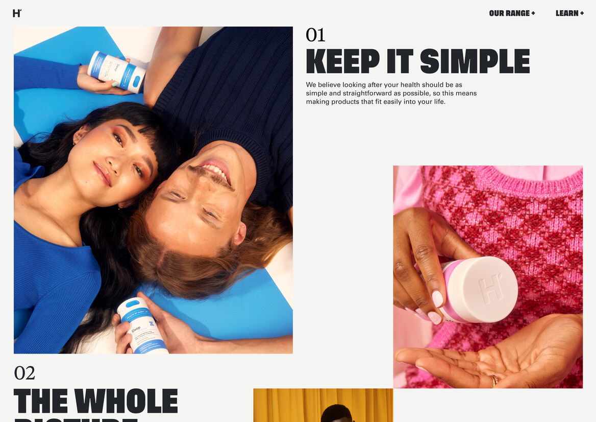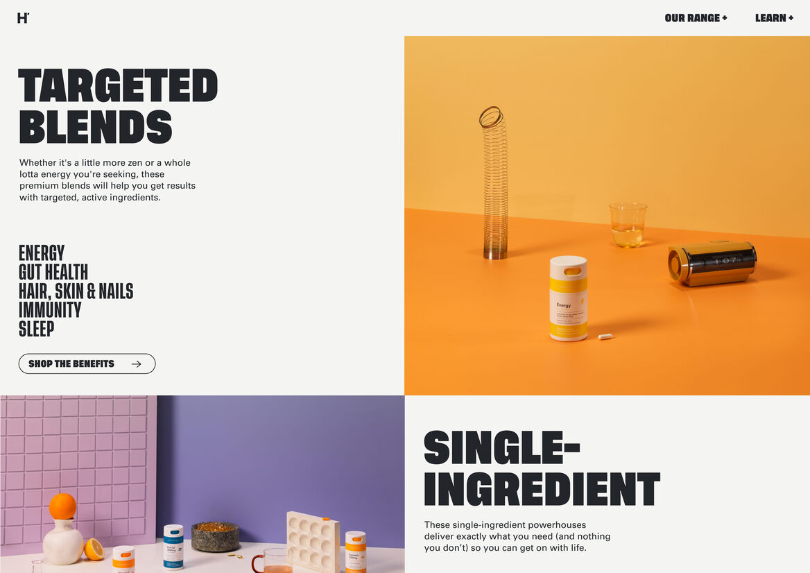 Enter Health by Habit, a supplement company challenging the status quo of what a wellness brand can be and making it relevant to today’s consumers. When designing the US website, the concept of harnessing control was visually depicted by a simplistic grid style design, but organised in an unexpected way, creating an easy-to-navigate platform for millennials and Gen Z to a enjoy a more unique and holistic view into the world of supplements.