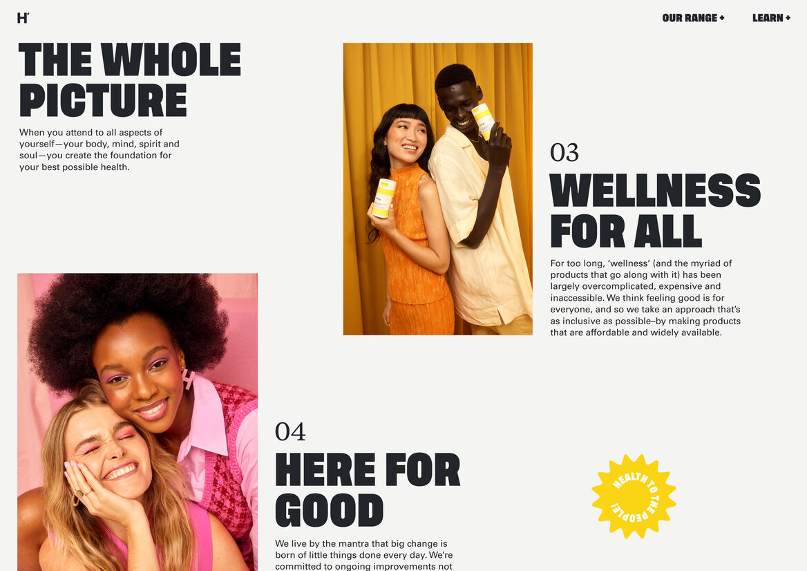 Pops of quirky personality icons, text and cutting edge imagery send people on a fun and unexpected journey, whilst educating them on the importance of a holistic approach to well-being and the Health by Habit product range.