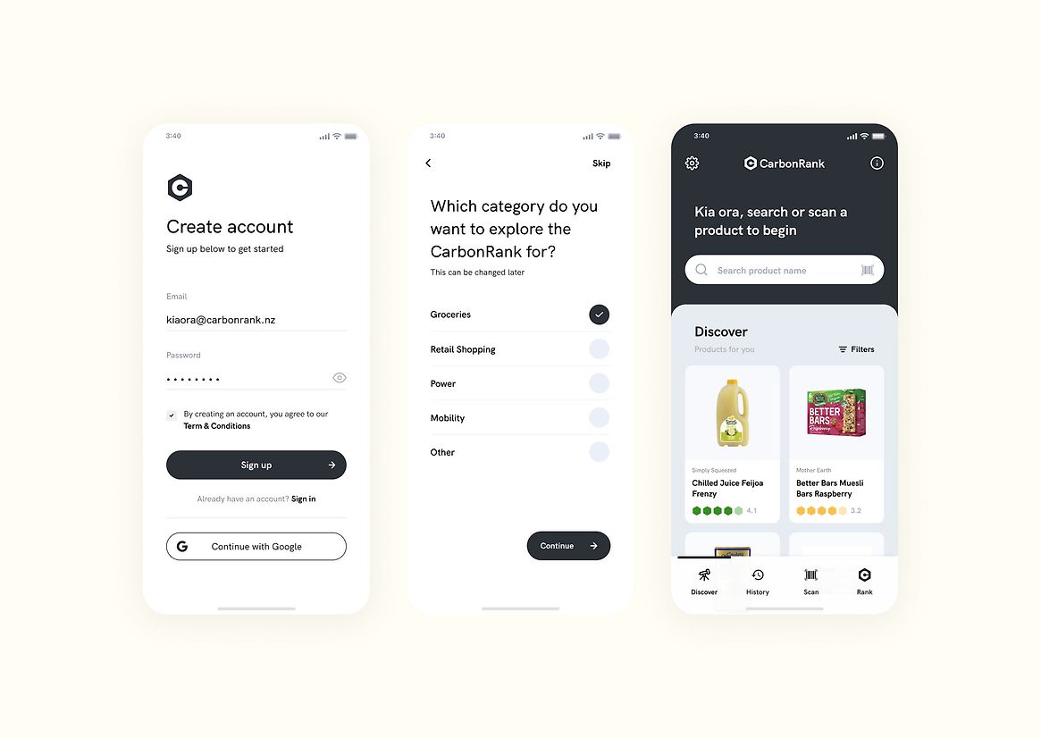 How might we create a world with a lower carbon footprint? Carbon costs the Earth in ways that are difficult to understand and appreciate. We have heard of carbon footprints, but we are not entirely sure what they mean and how they compare. Imagine knowing how much what you are buying impacts climate change, giving you the ability to compare similar products and your previous purchases. CarbonRank is going after this challenge of making carbon footprints intuitive and relevant – simultaneously incentivising companies to record and lower their footprints. CarbonRank explores how carbon footprint information can be given context, allowing us to make more sustainable purchase decisions. CarbonRank aims to create a world where more people understand carbon footprints, empowering them to use this knowledge to guide their purchase decisions. My intention was to design a product that would inspire a mindset shift away from just comparing the price and nutrition of grocery items. A shift towards considering the measure of how much a product costs our planet. By encouraging people to shop with lower carbon footprints in mind, companies would be incentivised to create more sustainable products – ultimately leading to a world with a lower carbon footprint. I believe with the right design intentions and treatment, this idea has the potential to grow into a movement that gives consumers the power to create quantifiable environmental change.