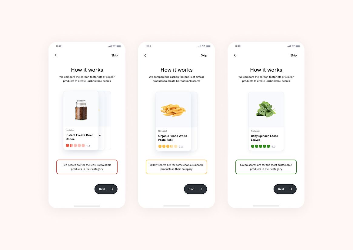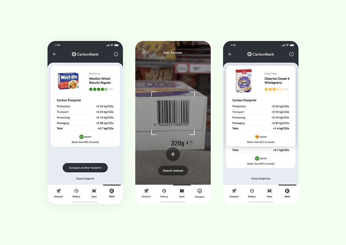 My intention was to design a product that would inspire a mindset shift away from just comparing the price and nutrition of grocery items. A shift towards considering the measure of how much a product costs our planet. By encouraging people to shop with lower carbon footprints in mind, companies would be incentivised to create more sustainable products – ultimately leading to a world with a lower carbon footprint.