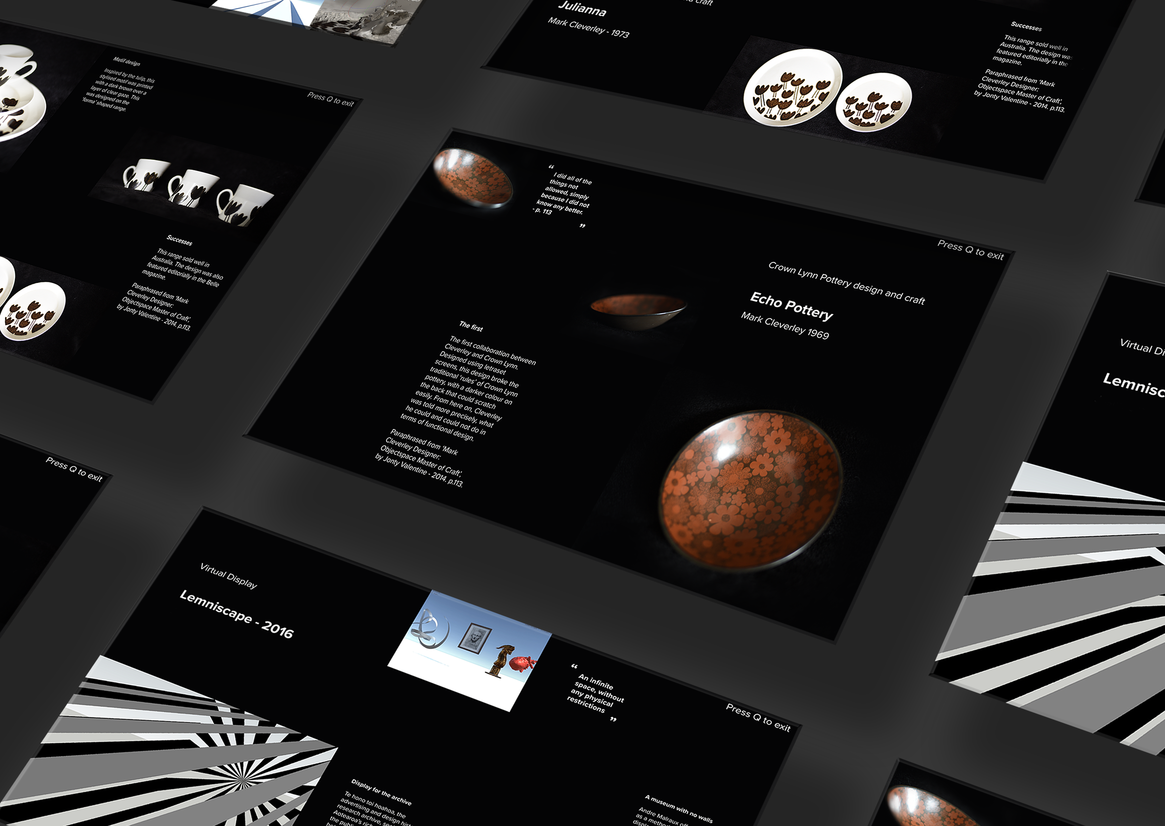 Digital Digital Campaigns Digital Products E-Commerce Websites (new 2024) Game Design Installation & Exhibition Large Scale Websites Small Scale Websites Student Digital User Experience (archived 2022) Animation Digital — formerly Interactive (2010–2019) Film Graphic Moving Image (archived 2025) Product Social Good Award Spatial Toitanga Value of Design Award User Experience Award (archived 2019) All categories Digital Campaigns Digital Products E-Commerce Websites (new 2024) Game Design Installation & Exhibition Large Scale Websites Small Scale Websites Student Digital User Experience (archived 2022) All years 2025 2024 2023 2022 2021 2020 2019 2018 2017 2016 2015 2014 2013 2012 2011 2010 Studio A-Z Justin Crook Virtual display systems for museum artefacts Finalist 2017 Student Digital Credits Tauira / Student Justin Crook Kaiako / Lecturer Dr. Alan Young School AUT Art + Design 2025