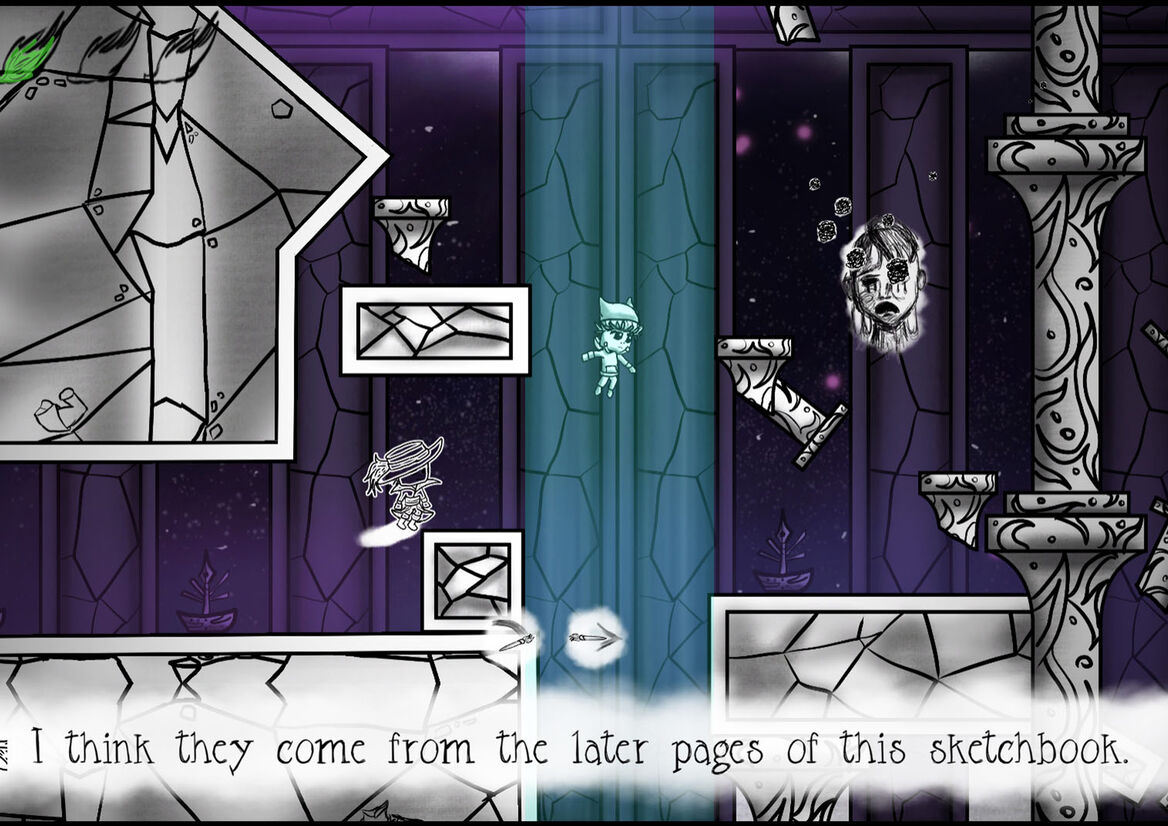 ‘What Draws Me’ In is a 2D platformer narrative game with a focus on the struggle of self-identity, in particular queer identity, about an artist who wakes up to find himself trapped within his own sketchbook. Befriending one of the characters he had drawn, the two journey together to find a way to escape as they confront and question their place in the world.