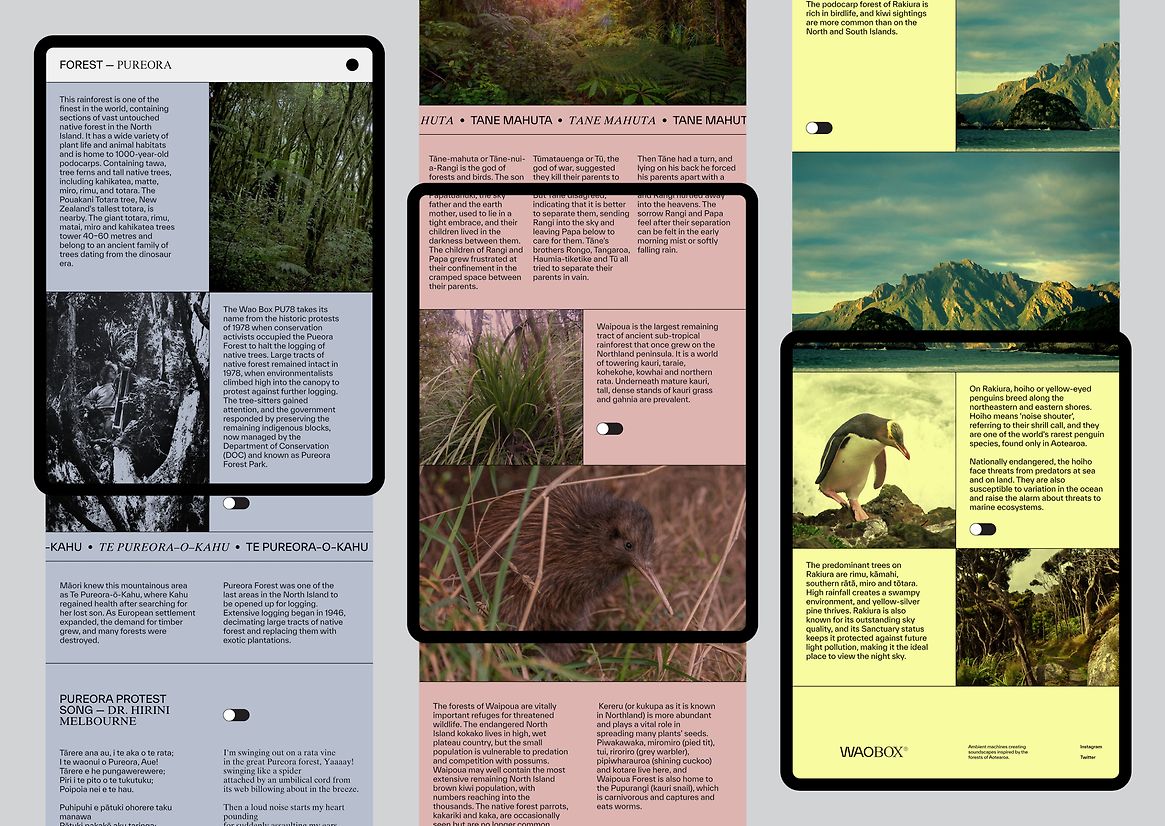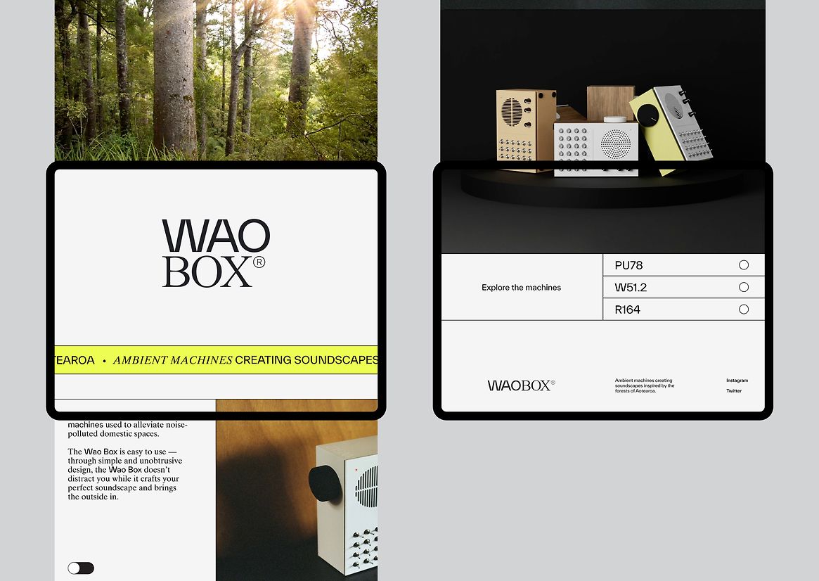 Appreciating and acknowledging Māoritanga in the project's name was important to keep myself accountable and honour the native land, its protectors, and its storytellers. WaoBox is a combination of Te Reo and English; Wao is Te Reo for forest. The name distils the essence of the project, and its simpleness works well to represent the uncomplicated nature of the device.