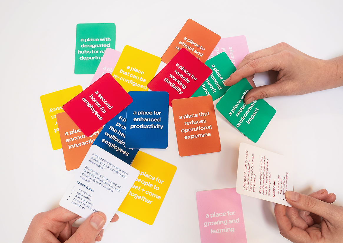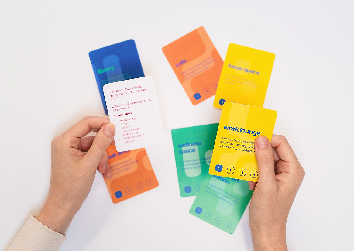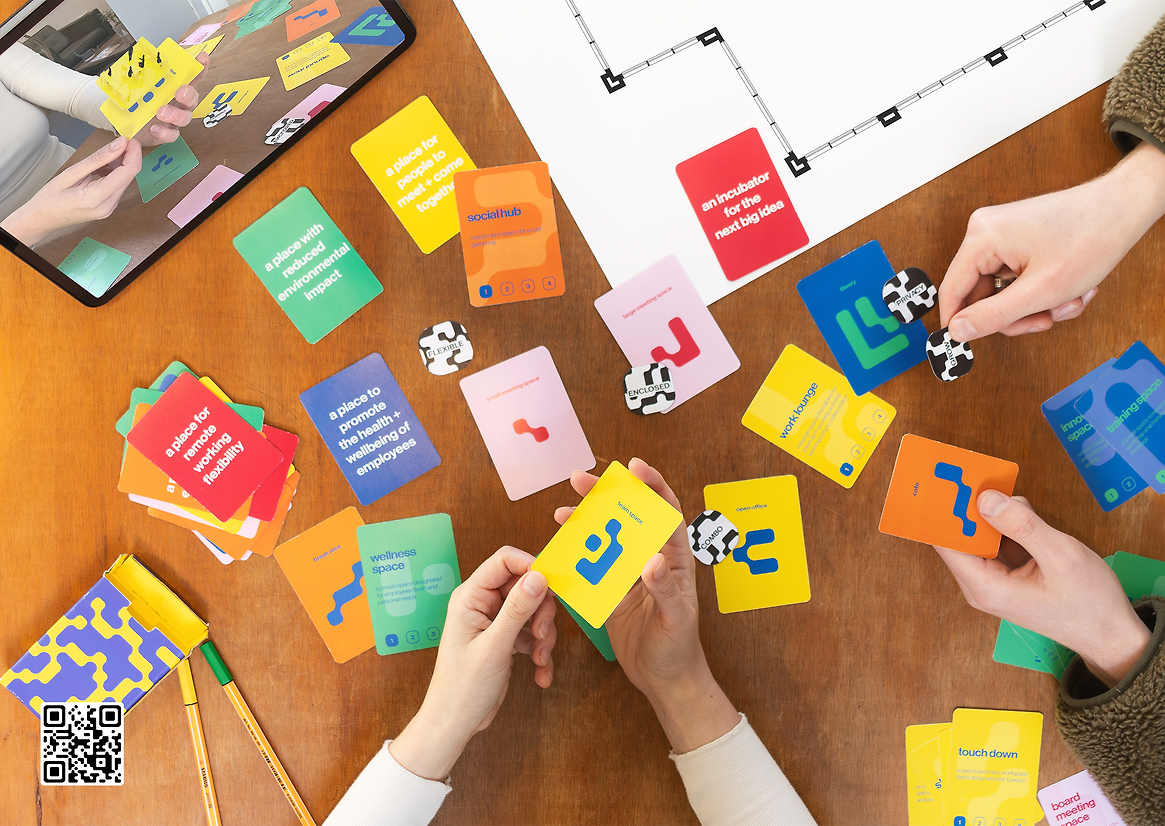 Imagine an interior designer inviting their client to a workplace strategy workshop to uncover the desired user experience of a new space. Sitting around a table, the designer pulls out a deck of cards and initiates a sequence that prompts discussions around project drivers and interior space types. As the client engages with these cards, augmented reality (AR) visuals come to life on a screen, allowing for an immersive exploration of different spaces. Tokens enable the client to manipulate models, fostering interactive discussions about modifications to those spaces. This hands-on experience helps clients grasp the spatial qualities they require while providing the designer with a clear direction for space budgeting and initial floor planning.