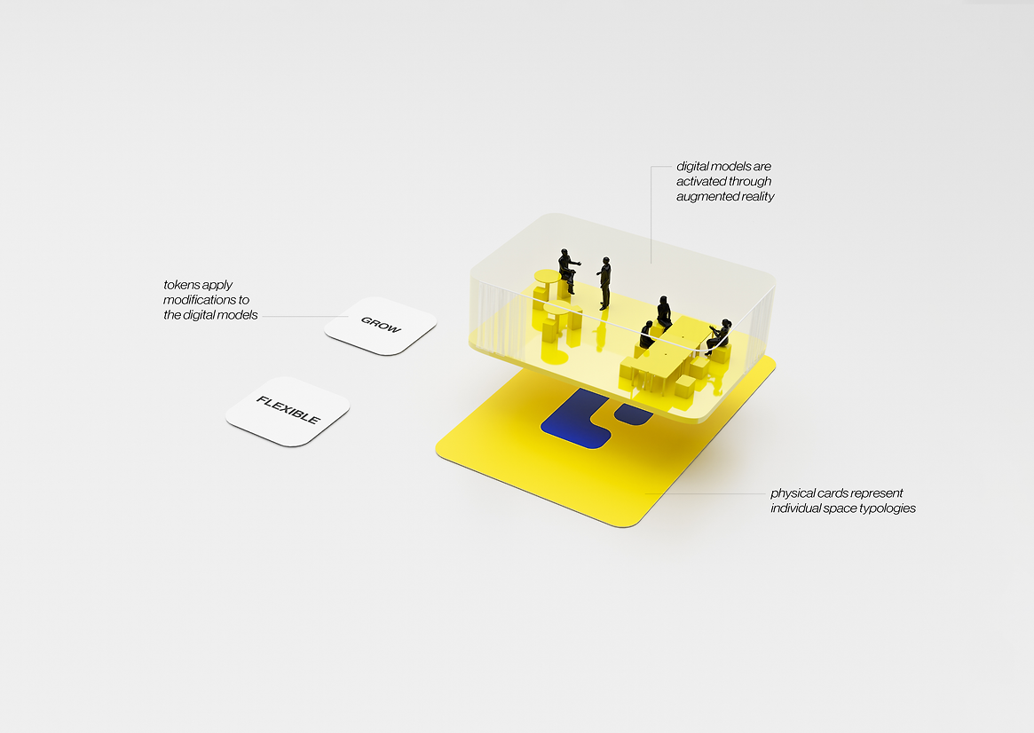 Within interior architecture workflows, the projects' development combines strategic research methodologies and building information modelling (BIM) processes to integrate this tool into existing industry standard practices. The tool comprises a comprehensive deck of project driver and space typology cards, which act as interfaces for AR visualisation using target image recognition. Interactive tokens allow the user to investigate scale, flexibility, privacy levels, and combinations of spaces, fostering an engaging exploration of spatial attributes.