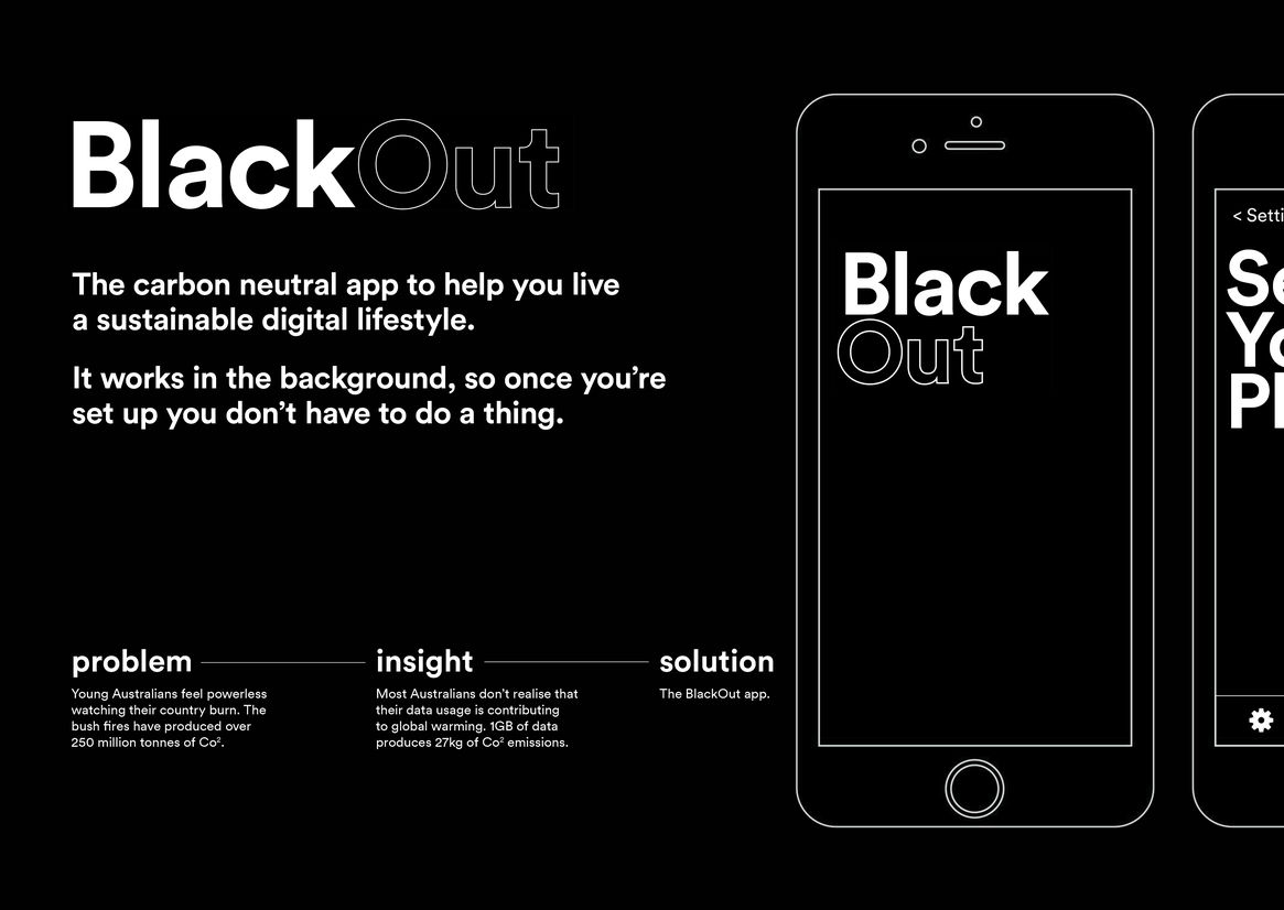 Digital Digital Campaigns Digital Products E-Commerce Websites (new 2024) Game Design Installation & Exhibition Large Scale Websites Small Scale Websites Student Digital User Experience (archived 2022) Animation Digital — formerly Interactive (2010–2019) Film Graphic Moving Image (archived 2025) Product Social Good Award Spatial Toitanga Value of Design Award User Experience Award (archived 2019) All categories Digital Campaigns Digital Products E-Commerce Websites (new 2024) Game Design Installation & Exhibition Large Scale Websites Small Scale Websites Student Digital User Experience (archived 2022) All years 2025 2024 2023 2022 2021 2020 2019 2018 2017 2016 2015 2014 2013 2012 2011 2010 Studio A-Z Madison Chan Rachel Holt BlackOut 2020 Student Digital Credits Tauira / Students Madison Chan, Rachel Holt Kaiako / Lecturer Nicola Hardcastle Client Connect4Climate School University of Technology Sydney Judge's comments: A clever way of helping bring awareness and offset the impact of carbon emissions generated by our daily behaviour of using our mobile devices. Design is simple and effective to achieve the concept’s goals. Quite amazing.