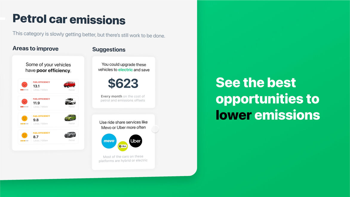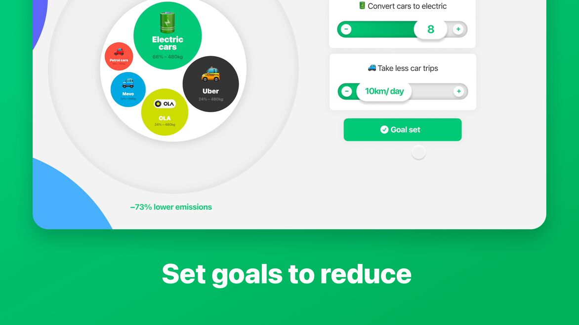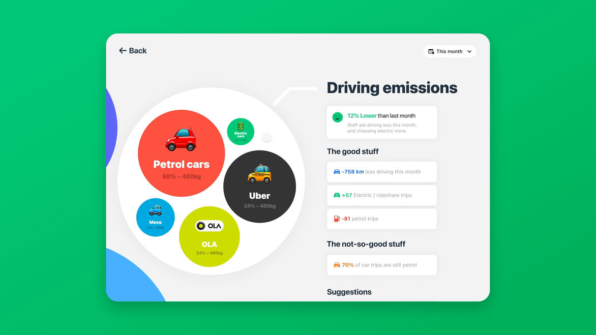 The next step is to start reducing your emissions. After you see what areas of your business are contributing the most, you can tap to see more detail about each category. Greenscale proactively provides smart suggestions on what the most impactful changes in your business might be – and importantly helps you create and stick to reduction goals, while tracking your progress over time.