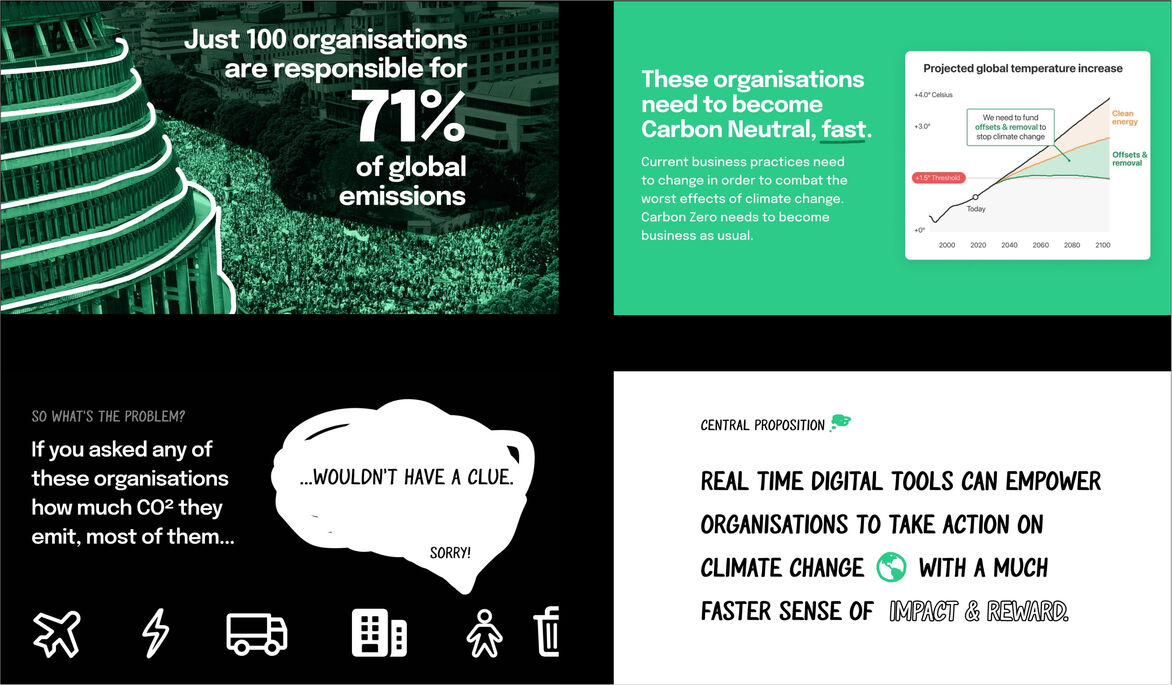 Rather than producing just-another-dashboard-UI, I wanted to try to gamify the process of reducing emissions with Greenscale and make an app that was playful and fun to use day to day – in the aim to make Carbon Zero business as usual.