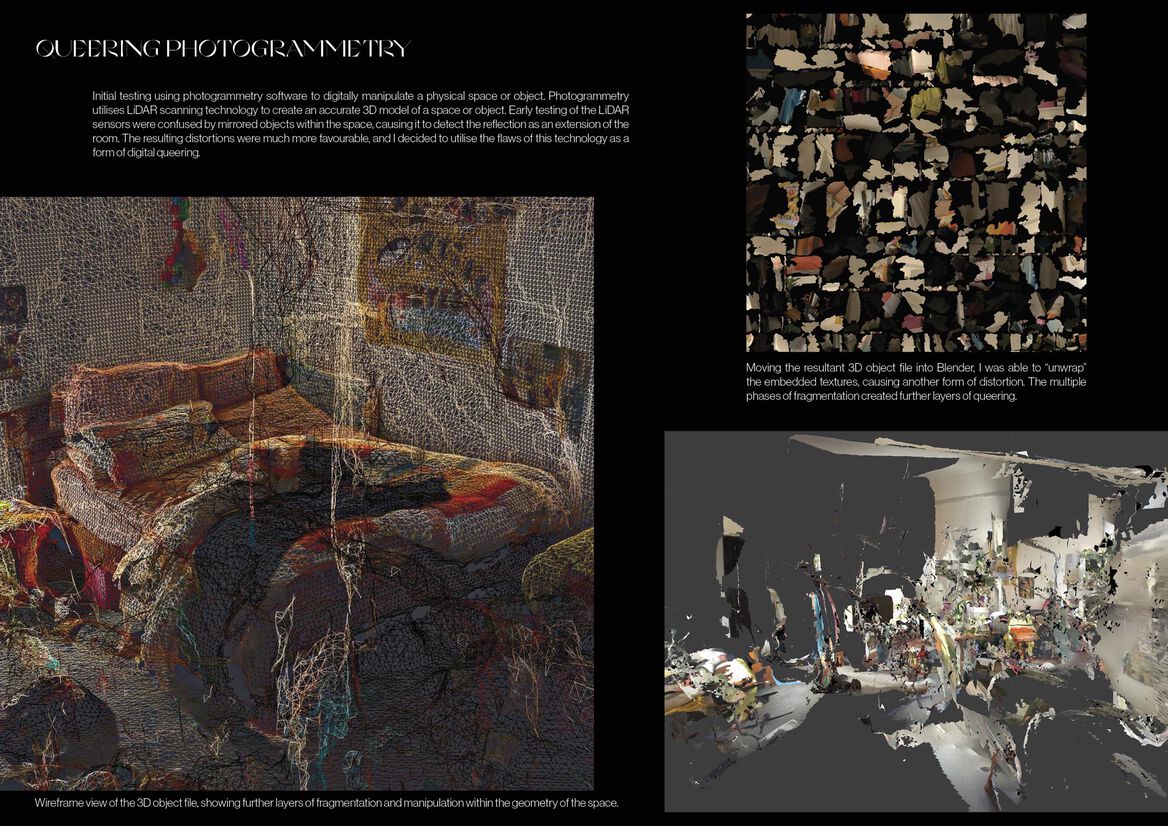 Culminating as a multimedia installation, I’m (Almost Certain That We’re) Here embodies queer agency within digital space, mediating between the physical and the virtual. It is synthesised by a narrative soundscape that ambiguously guides the audience through an experience.