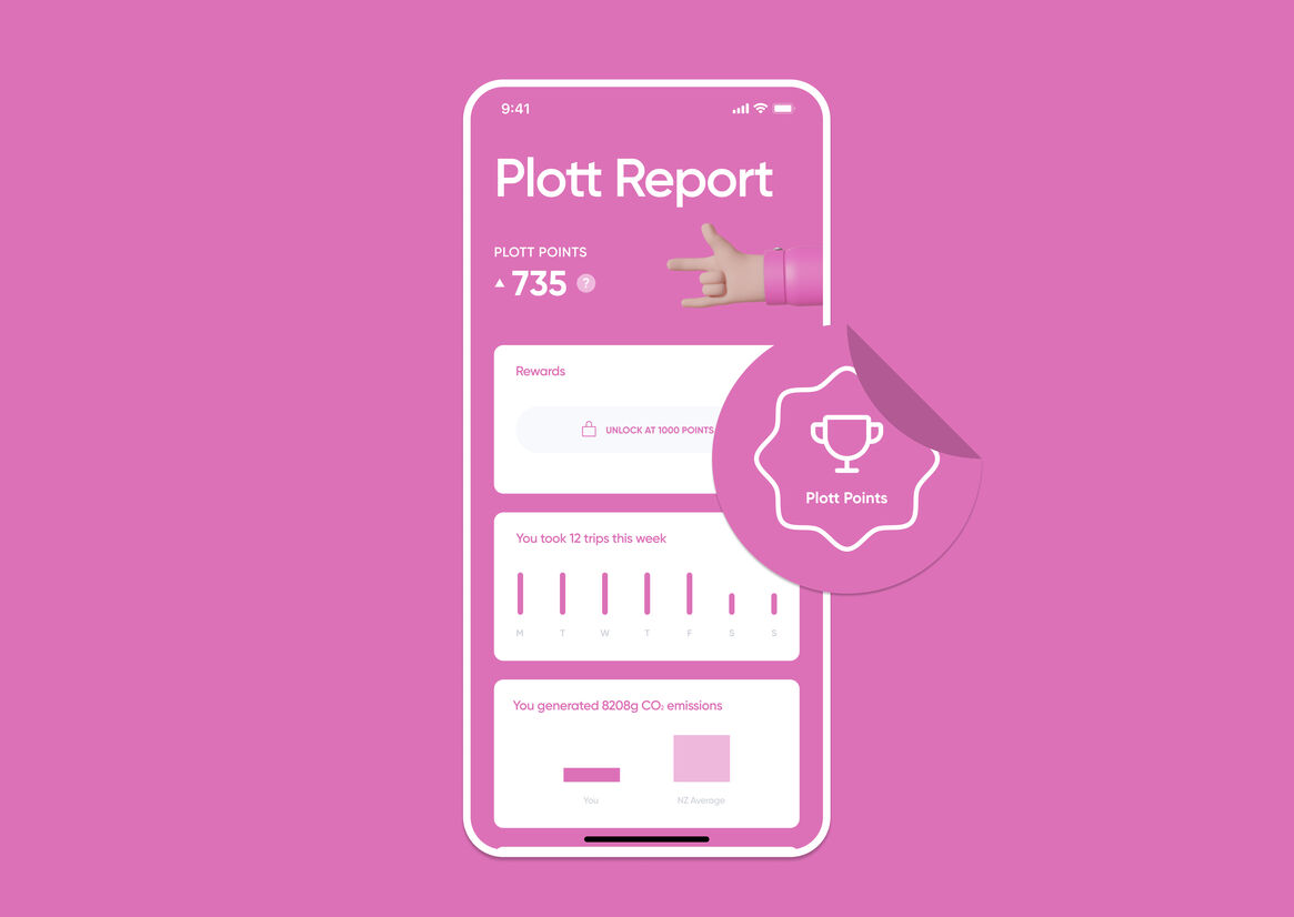 Plott brings all of New Zealand's alternative transport services into one easy to use product. Instead of downloading 10 different apps to try and find the fastest ride across town, users have all of their transport options in one place. Users can compare rides based on their emissions data, cost, comfort or speed and unlock them from within the app. Not only can consumers make more informed transport choices, they can also see how their choices stack up. Plott showcases how your personal emissions generation compares to the New Zealand average, and rewards users who make an effort to keep their emissions low.