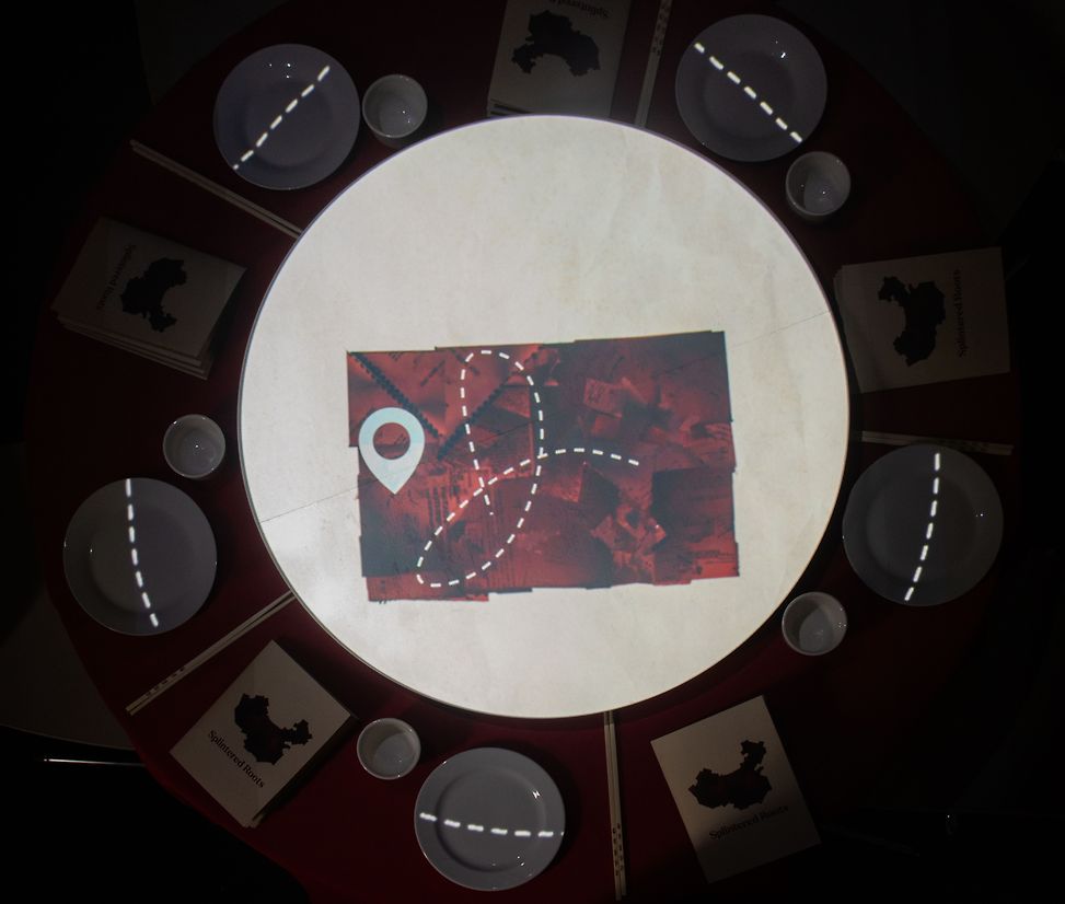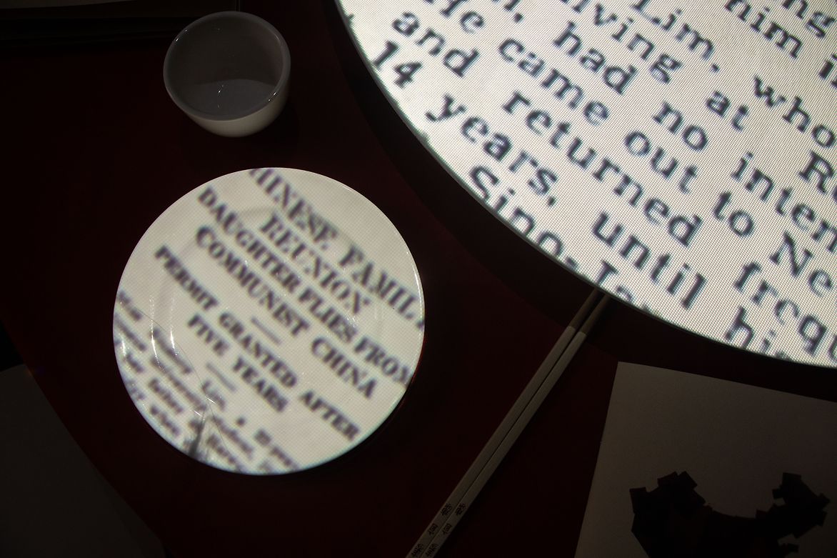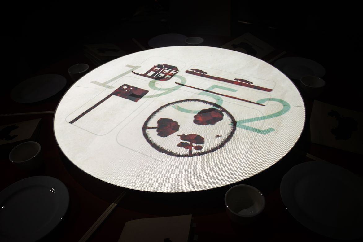 Design decisions, such as dim sum, being a traditional form of dining in Chinese culture, serve as a key component. The concept of shared experiences through dining serves as a way to bridge the Chinese and Western cultural gap, engaging a multitude of audiences. Animations are projected onto the central lazy susan, which is accompanied by coinciding animations on the surrounding plates, transforming what could be a solitary experience into a collective and participatory one. This also symbolically replaces the consumption of food with the consumption of knowledge.