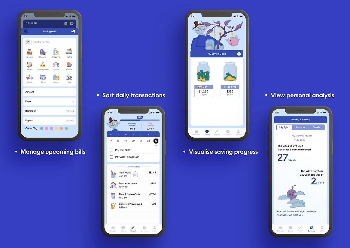 Trackit is a budgeting app that facilitates young New Zealanders who lack budgeting skills in gaining a better understanding of their financial situations and achieving long-term financial wellbeing.