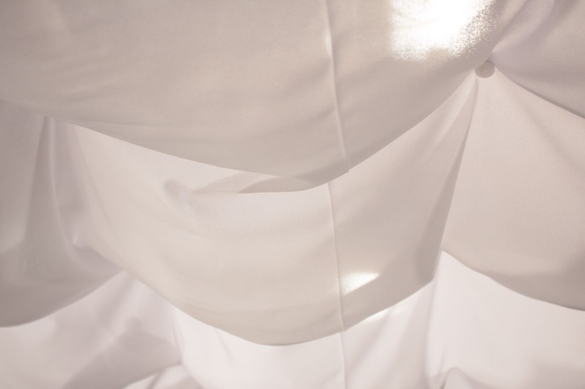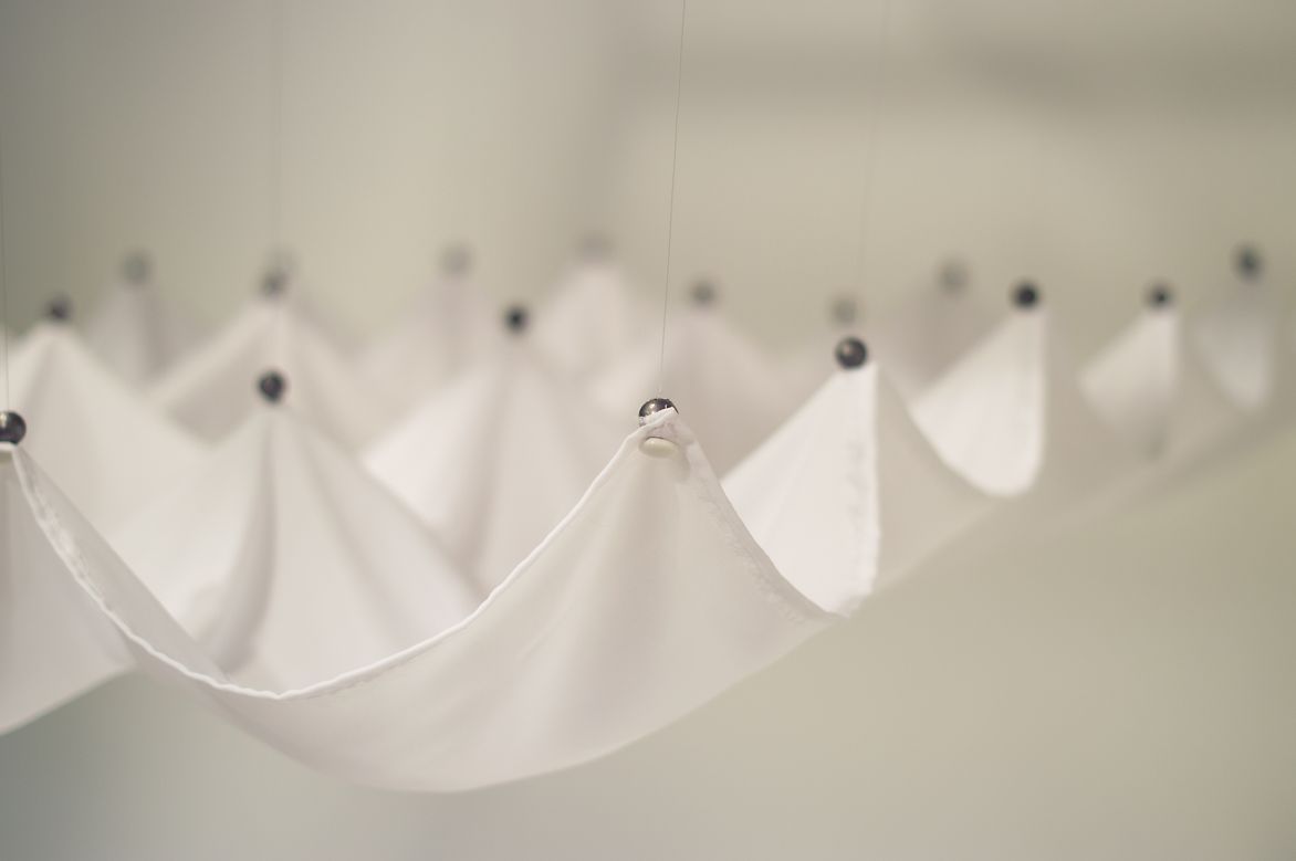 Anodos turns the traditionally static ceiling into an expressive surface. As it moves, it reshapes the space, alters acoustic behaviour, and shifts how occupants perceive and inhabit the room. Whether standing, sitting, or lying beneath it, viewers experience space as something active and interpretive, something that listens back.