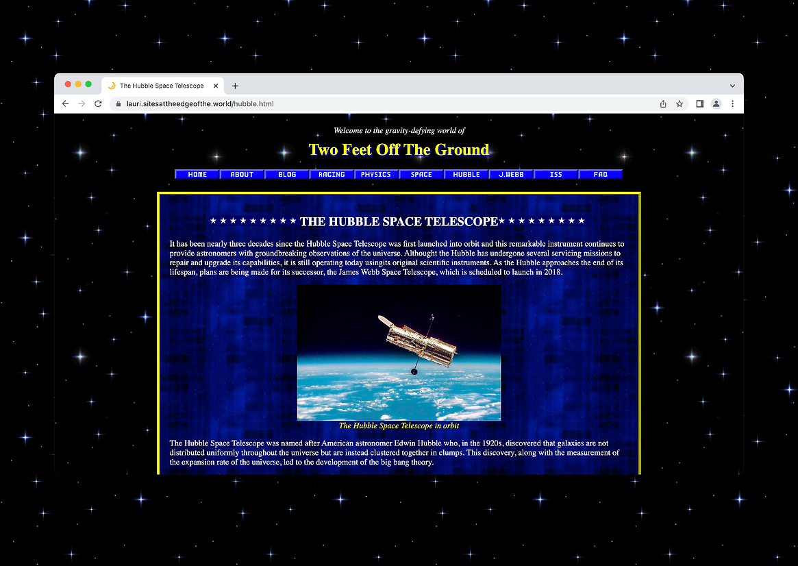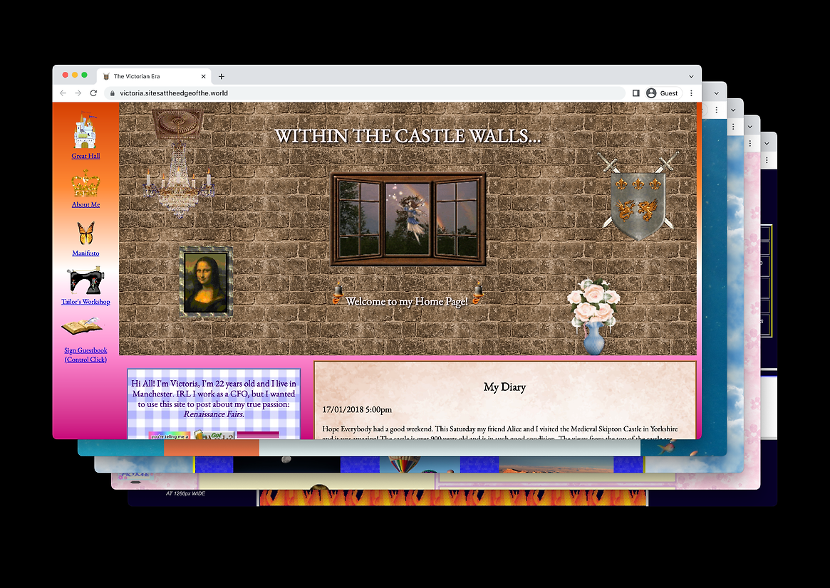 The web of the late 90s was a garish cornucopia of flashing gifs and glittery word art. Users from across the world were carving out personalised corners of the internet, hand-coding websites that were provisional and one-of-a-kind. Sites at the Edge of the World uses this gaudy visual language to challenge expectations about the way we construct identity online. An interactive investigation into storytelling and world-building, the work is comprised of the personal websites of five Speculative Identities – ‘characters’ developed using generative code and machine learning algorithms.