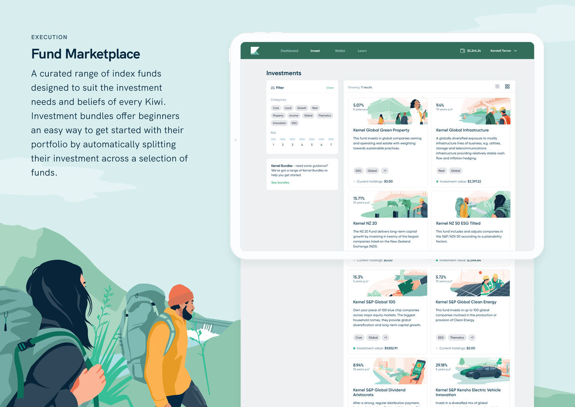We were frustrated with the inefficiency and lack of innovation in the industry. We needed to create a long-term wealth-building solution that provided a curated range of investments, to empower all Kiwis to safely save for their future. So we created Kernel with a mission to foster a wealthier, more financially literate New Zealand for generations to come.