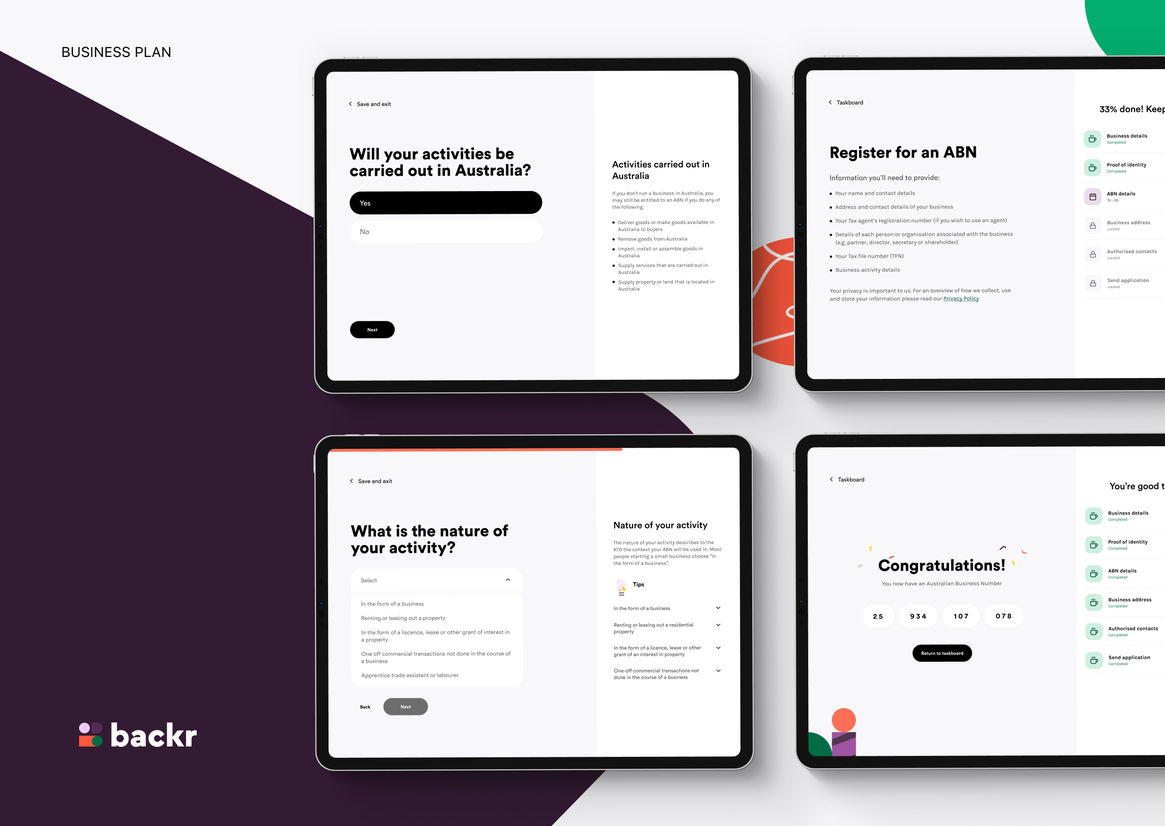 Our client, x15ventures, wanted to support small businesses by making it easier for aspiring business owners in Australia to turn their dreams into reality. So they engaged us to help them create Backr, a digital platform that simplifies and streamlines the process of setting up a business in Australia, removing many of the traditional roadblocks and points of confusion.