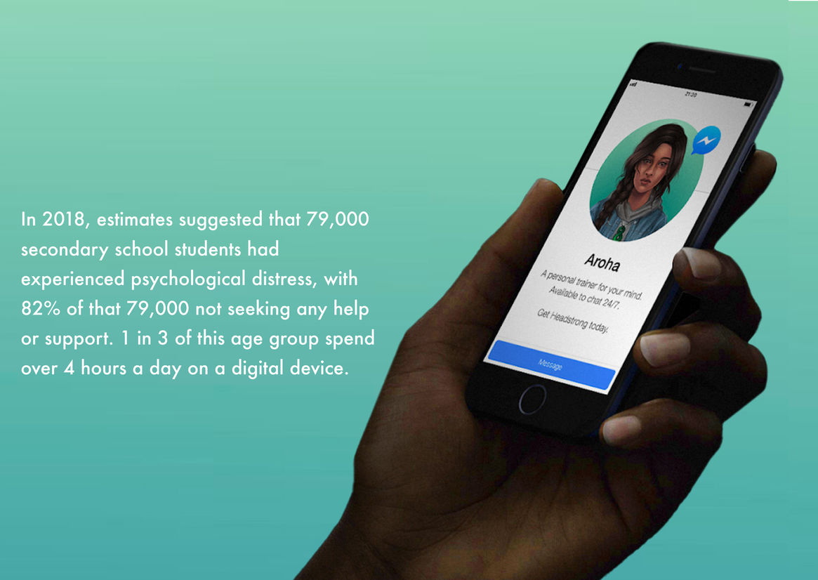 1 in 3 of this age group spend over 4 hours a day on a digital device. This ‘always on’ channel presented an opportunity to explore ways to leverage teenager’s mobile time to support their mental wellbeing. Experts in the fields of psychology and young people’s mental health explained that Cognitive Behavioural Therapy (CBT) coping strategies work, but young people’s adherence to the exercises when not in direct contact with a clinician or mental health professional is very low.