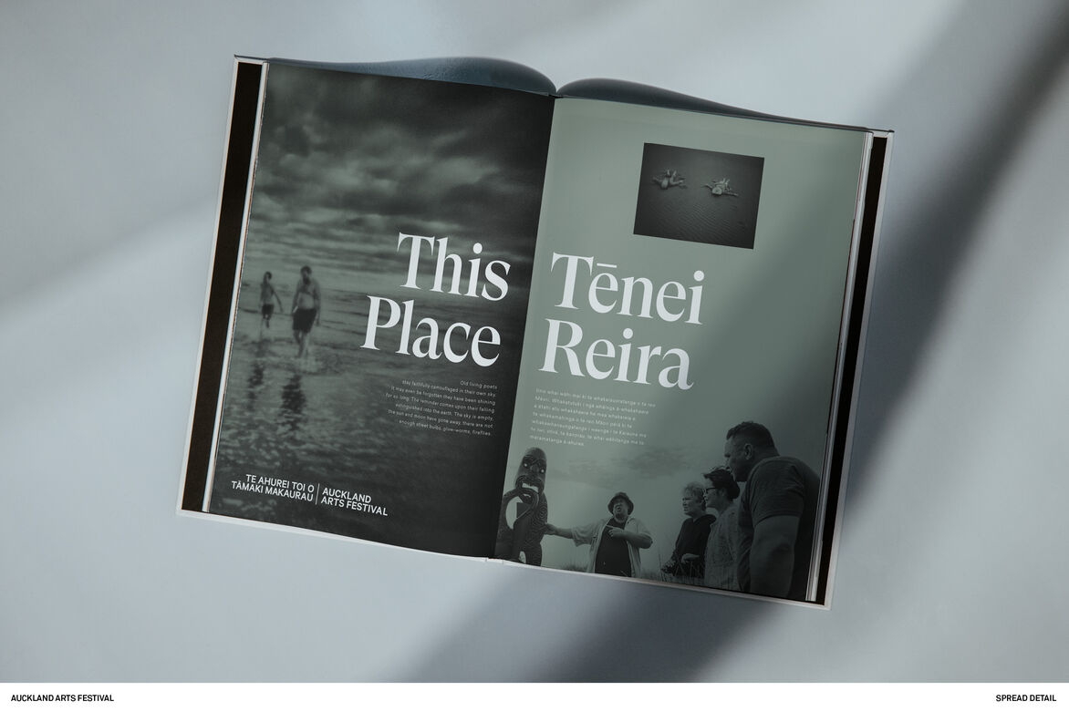The intention of the work was to visually ground the festival in Aotearoa; specifically to ‘this land’, ‘this place’ and ‘these people’.