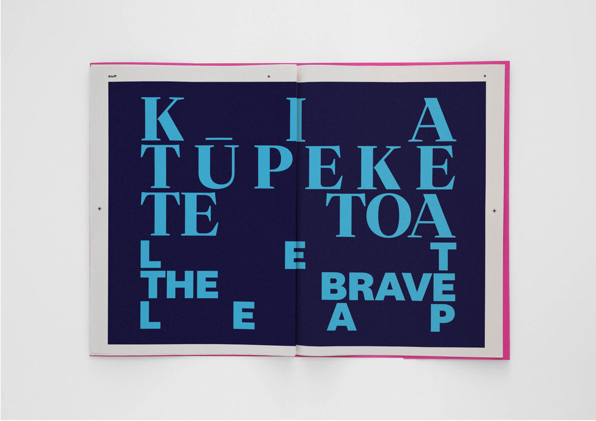 This brand book tells that story in a bold new style. Centred around the creative drivers of Tūkaha (bold), Pōtiki (spirited), and Tiakitanga (For the People); and led by the notion of ‘follow no one’, it shares how the new Stuff brand is forging its own path to a contemporary future, while cherishing the past.