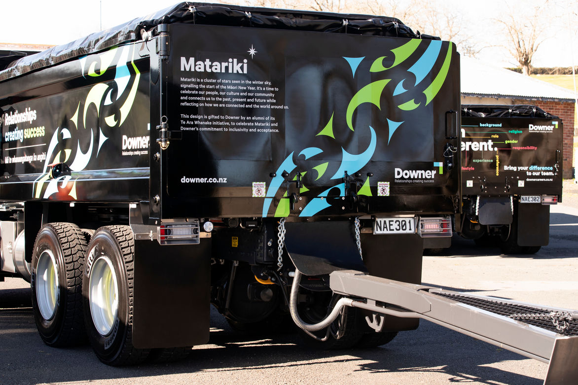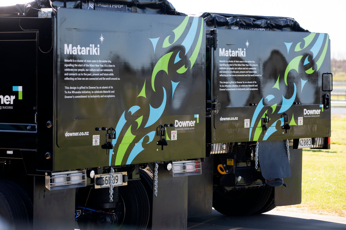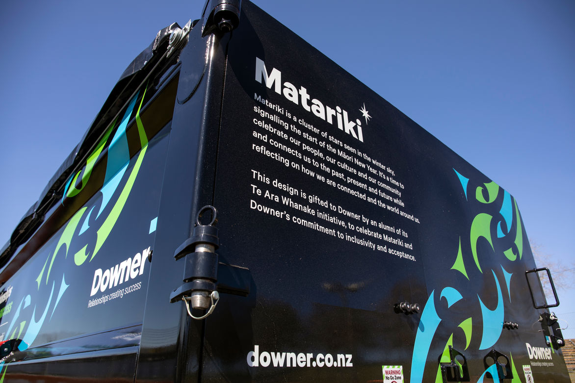 In celebration of Māori Language Week 2020, Downer proudly released the first two Scanias. The vision for the artwork was to create a design that incorporated the celebration of Matariki and the importance of Te Reo Māori. We also wanted to recognise and uphold the relationship that we have with Māori as partners of the Crown through the signing The Treaty of Waitangi and that Māori are holders of the spiritual power (mana) of Aotearoa.