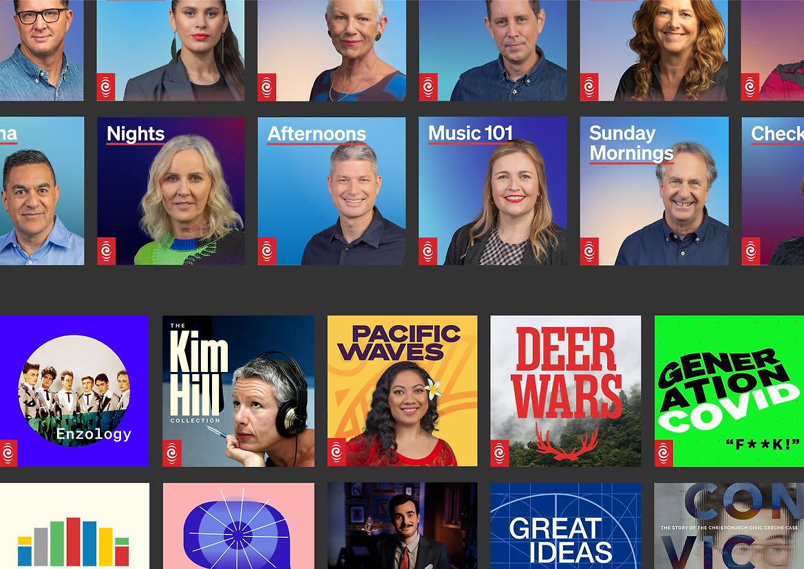 Lastly, we honed layouts and templates to develop more consistent styles for different platforms. Additionally, consistent tohu badging rules were developed for all podcast and product covers, embracing the power of the red tohu in place of the full RNZ text lock-up.