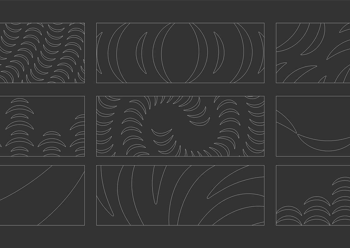 We started by zooming into the RNZ tohu, isolating the curved ripples at the top and bottom of the mark. On their own, they aren't particularly special, but if we begin to repeat them, compose with them, scale and crop them, they can form a cohesive language with endless design possibilities. We called this the resonance device. It is used sparingly, but is very handy for adding pattern, illustration or icon elements to digital banners and modules. Its universal shape appeals to many cultures, and its softness is a welcome addition to the brand.