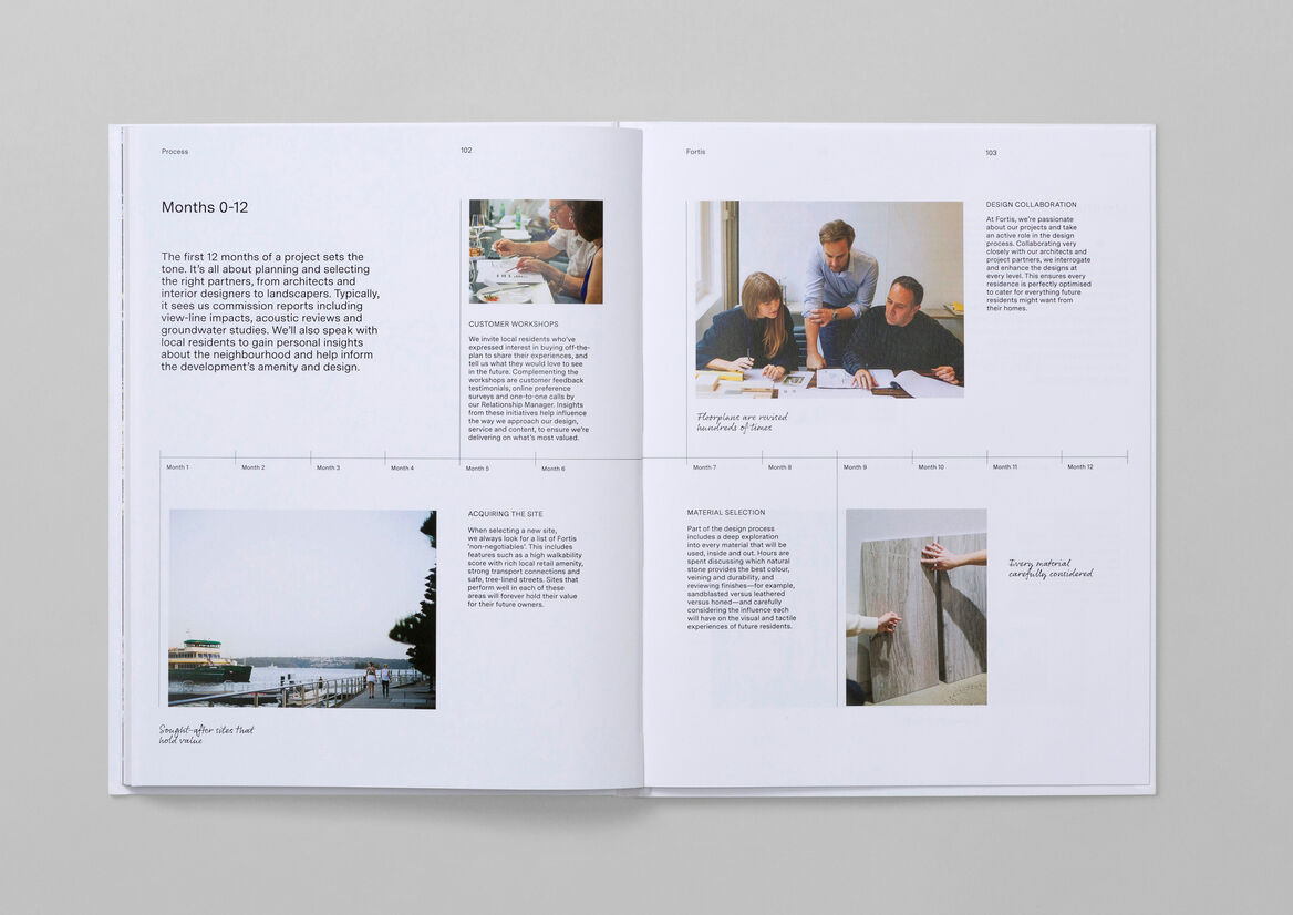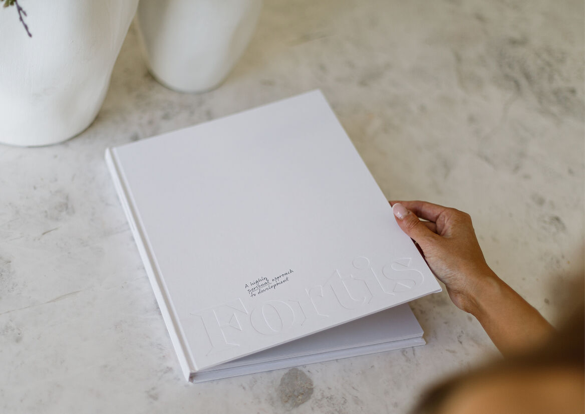 While the new brand touches every corner of the customer experience, one of the most strategically pivotal elements for the Fortis business was a bespoke 120-page hardcover portfolio piece. It was created as a beautiful visual showcase – not simply of what Fortis does as a developer of boutique residential properties but, perhaps far more importantly, of how Fortis thinks.