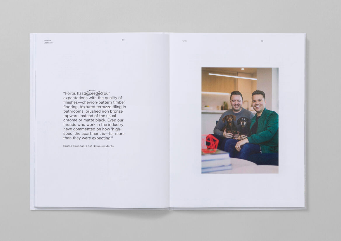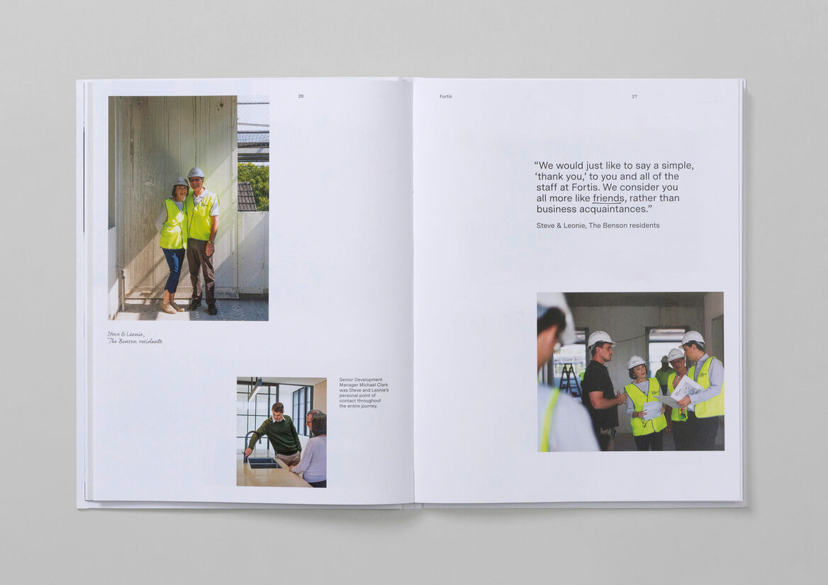 To ensure a seamless buyer experience, future Fortis development brochures are now also aligned to follow the same format as the portfolio piece. This means potential customers can receive them as a perfectly-matched pair – a brochure that talks to a specific residential project, and the Fortis portfolio piece that showcases the people behind it.